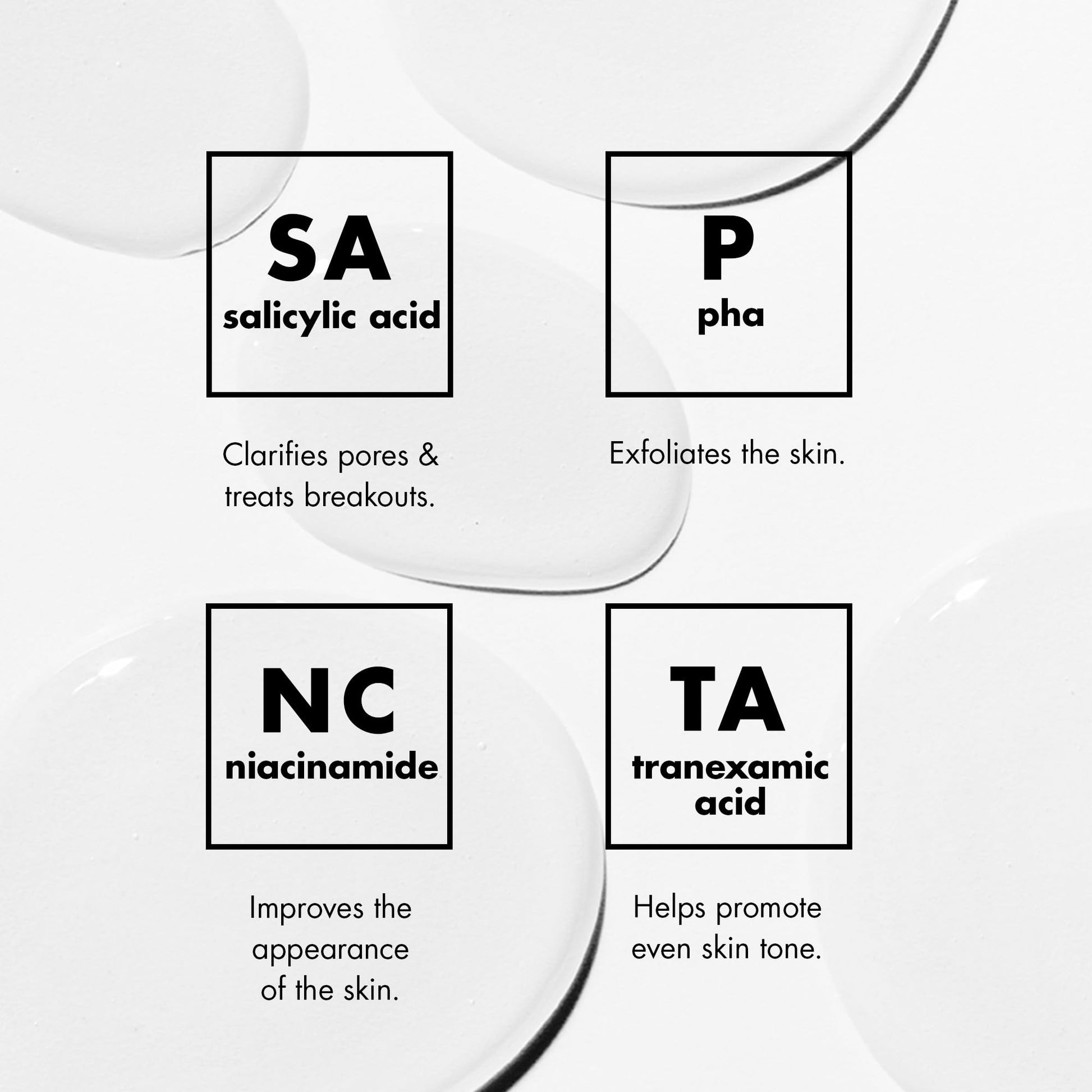 Powered by 8.5% triple-acid complex: Salicylic Acid, Tranexamic Acid, and PHA Plus
