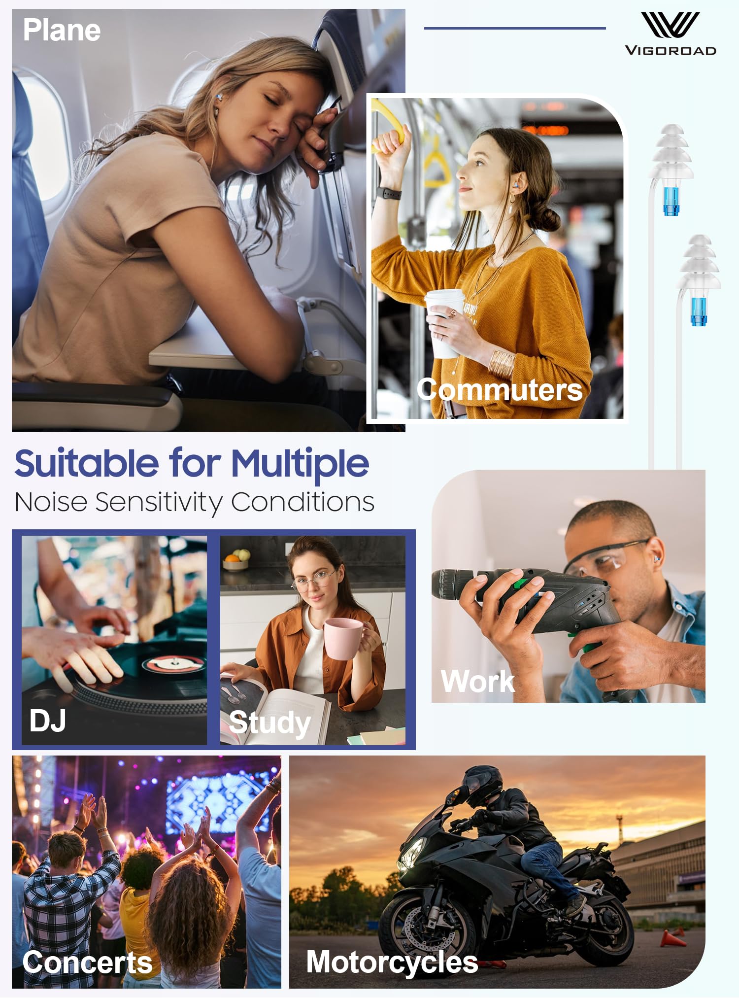 - MULTIPLE OCCASIONS: Perfect for hearing protection in loud environments or for ensuring silence when trying to focus or concentrate. Perfect to use for plane, travel, studying, motorcycles, DJ, concerts, constructing, work and relaxation etc