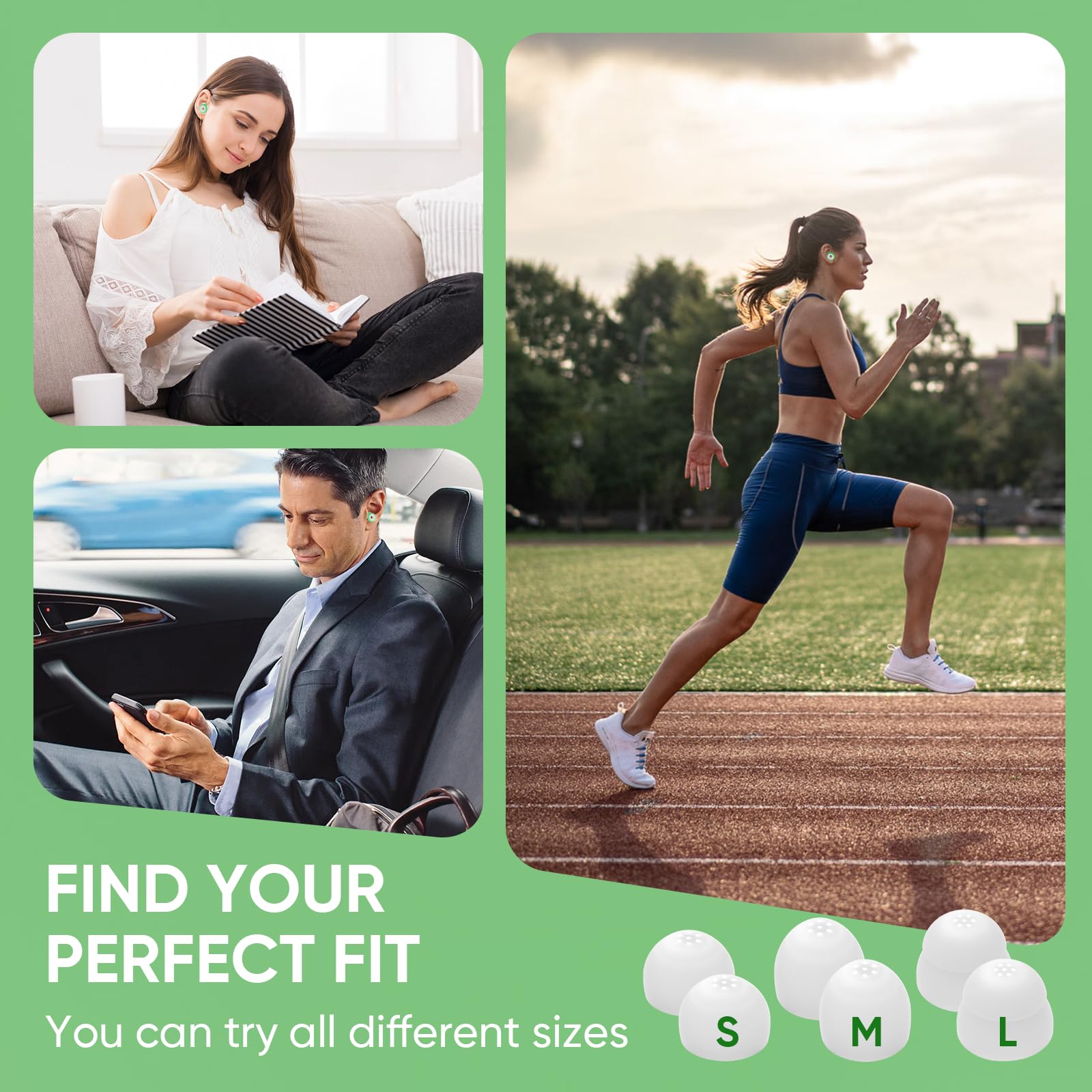 Ear Plugs for Sleeping Noise, 2 Pack High Fidelity Ear Plugs, Reusable Silicone Earplugs for Concert, Rave, Work, Musicians, 3 Pair Ear Tips in S/M/L, 18-25 dB Ear Plugs for Noise Cancelling Green