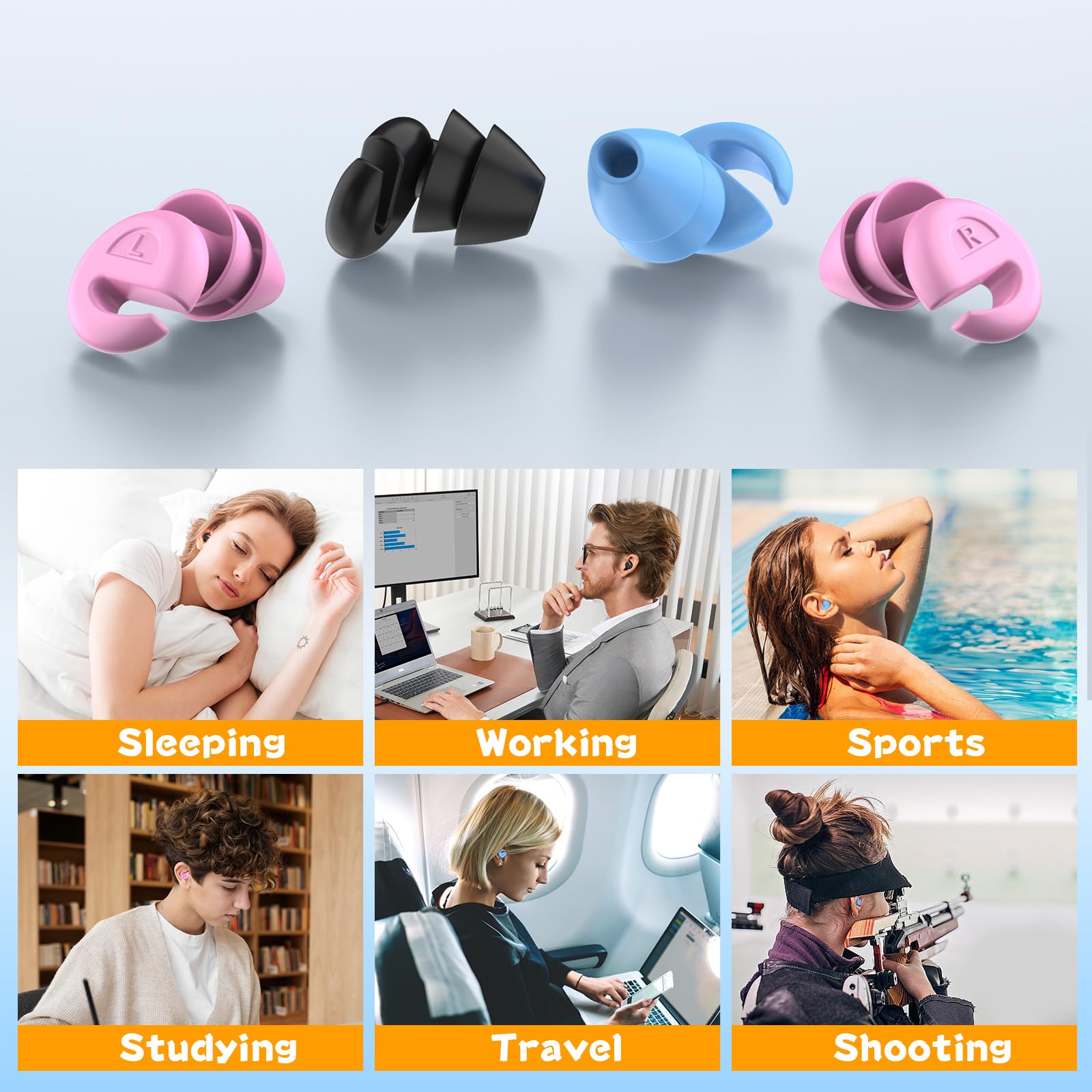 - 【Upgrade Material & Newly Design】Soft-touch silicone Ear Plugs for Sleeping Noise Cancelling. Made with ultra-soft and high-grade silicone material, features a unique design with a super comfortable. Great for Side Sleepers, Waterproof design, makes it comfortable for sleeping on your side. Three pairs of earplugs are equipped with three portable storage boxes for easy carrying.