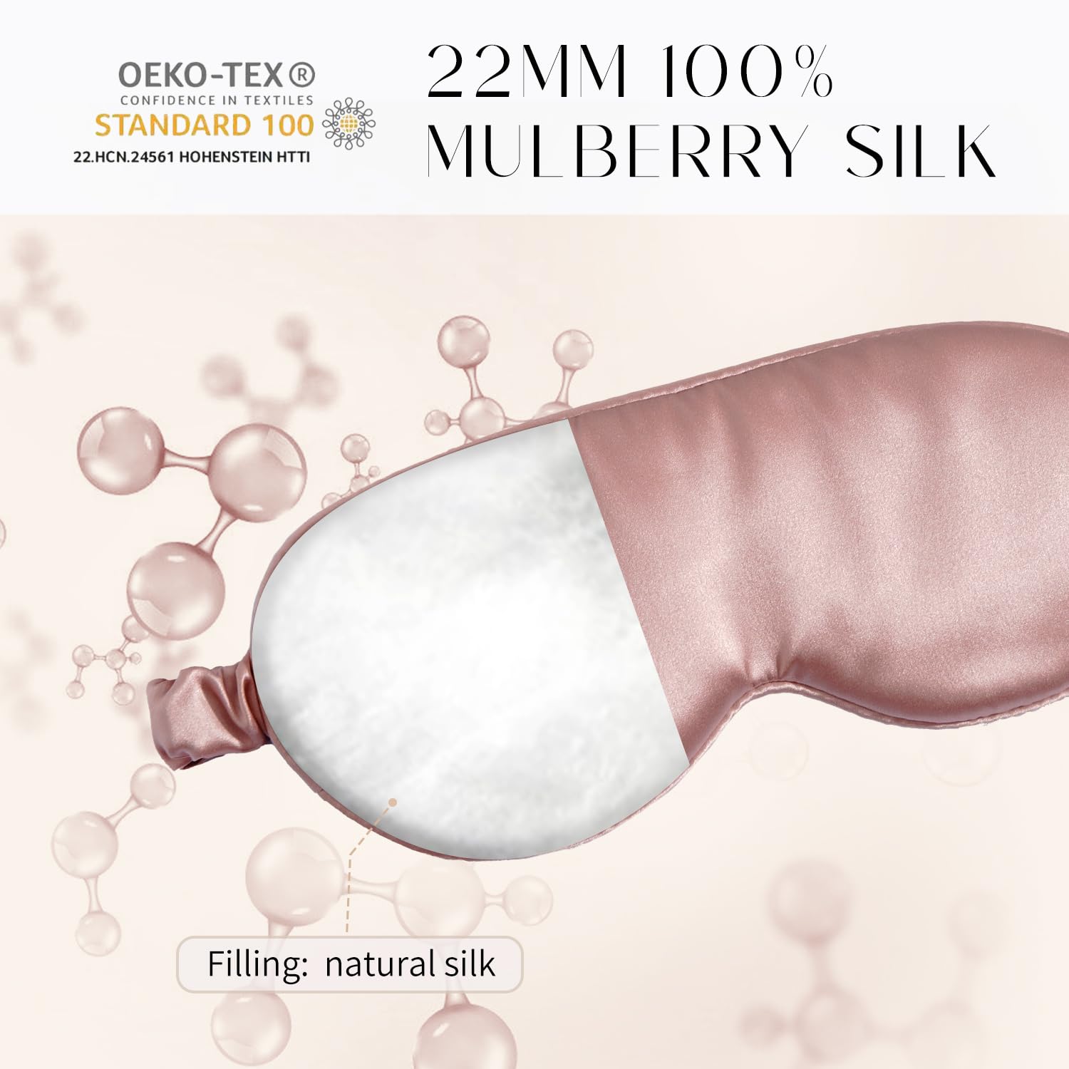 - 【LUXURY 3D SILK SLEEP MASK】Our exquisite 3D silk eye mask is designed for comfort. It is made of 22 momme mulberry silk on both sides, filled with 100% silk instead of satin, providing a luxurious and skin friendly touch. Experience the natural happiness of silkworms and enjoy the most peaceful sleep.