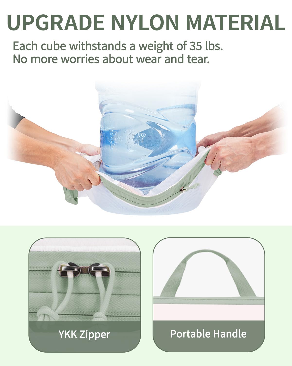 - 【UPGRADE MATERIAL】: The packing cubes are constructed with a durable, ultra-tear-resistant nylon fabric that can withstand huge tension and wear. High density mesh design ensures the travel essentials clothing remains fresh and breathable, and allows you to quickly find items inside without opening the travel cubes
