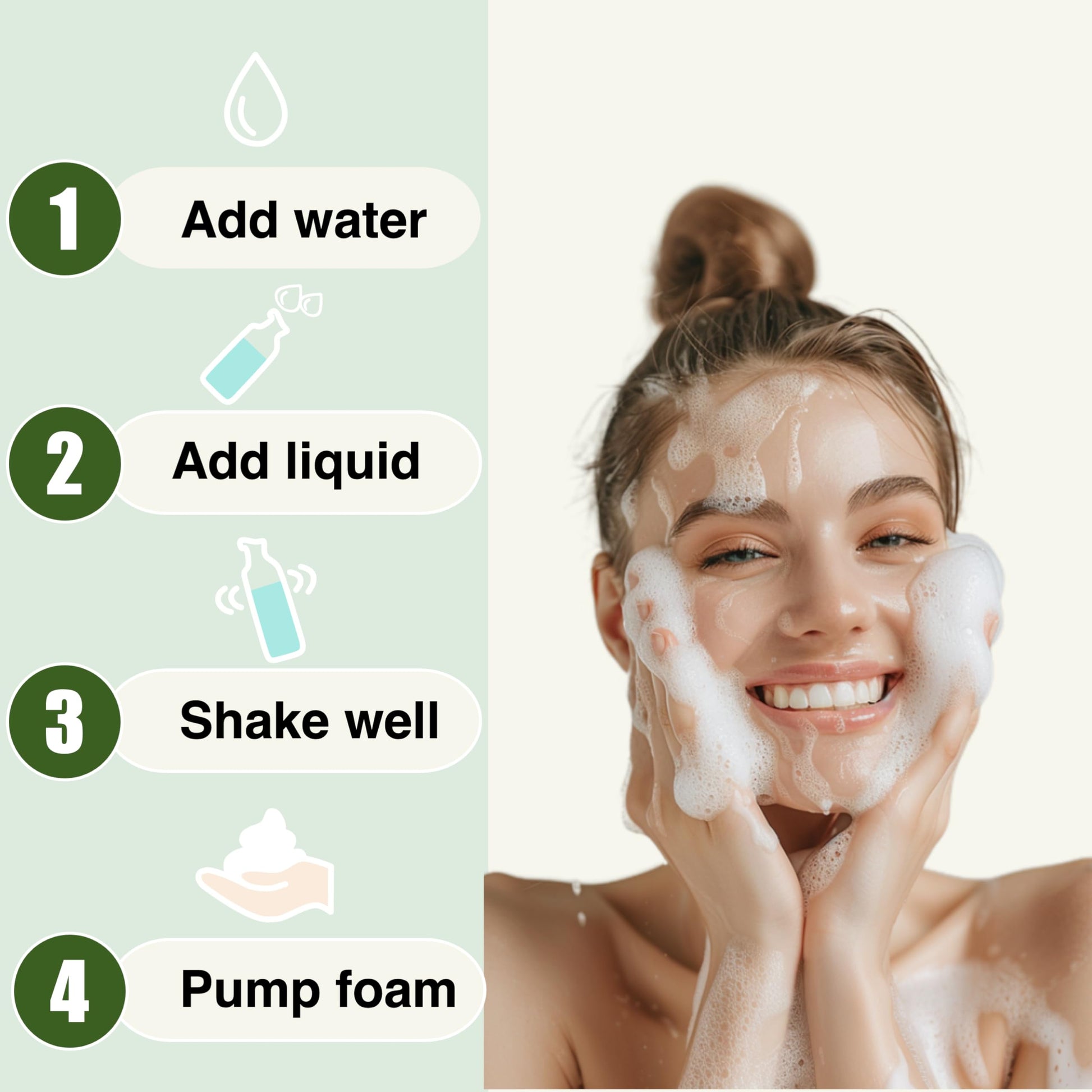 - Convenient and Refillable: Enjoy the convenience of our travel foam pump bottle set, perfect for dispensing liquid soaps, shampoos, body wash, and facial cleanser. These foam pump bottles are easy to refill and use, simplifying your daily routines and making them ideal for both home and travel use. The recommended liquid-to-water ratio is 1:3 or 1:5, with more water for proper dilution.