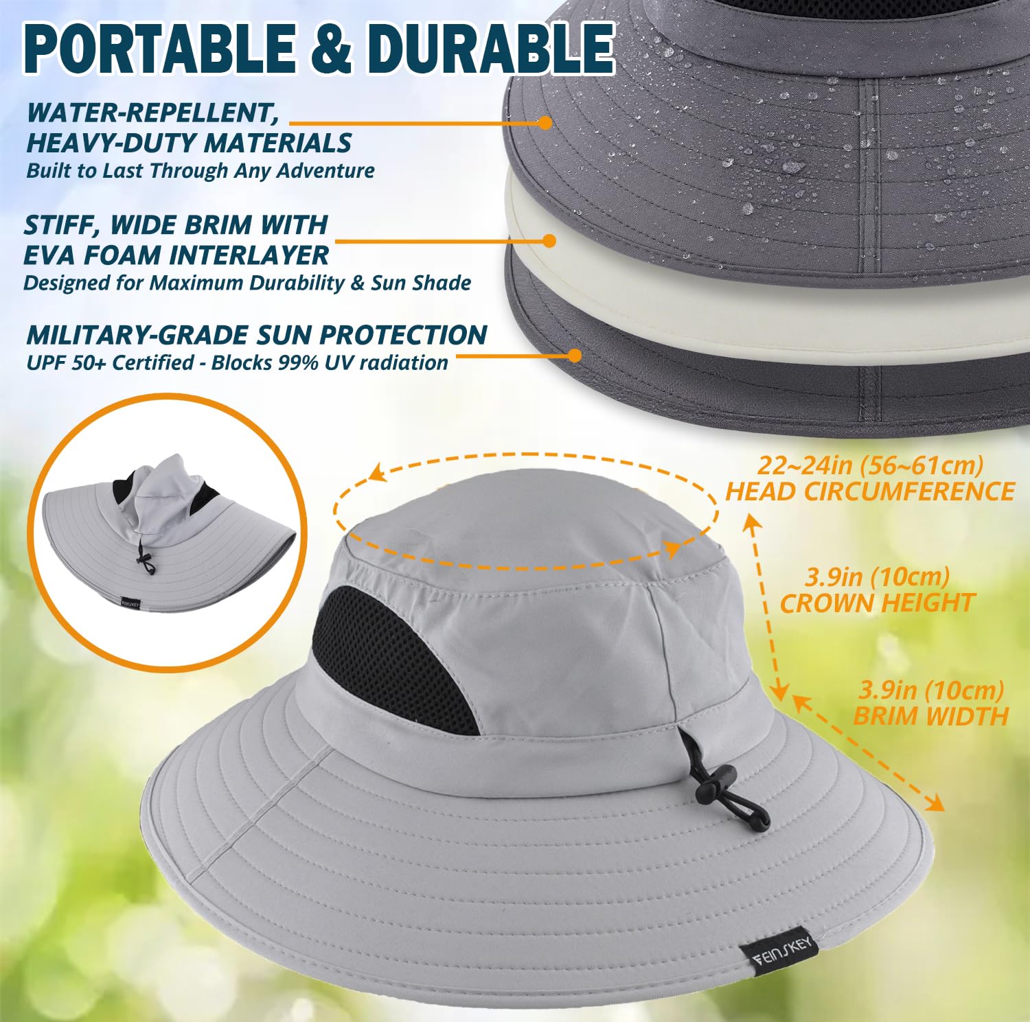 EINSKEY Wide Brim Sun Hat, UPF 50+ UV Protection Waterproof Packable Bucket Hat for Men & Women, Fishing Hiking Beach Garden