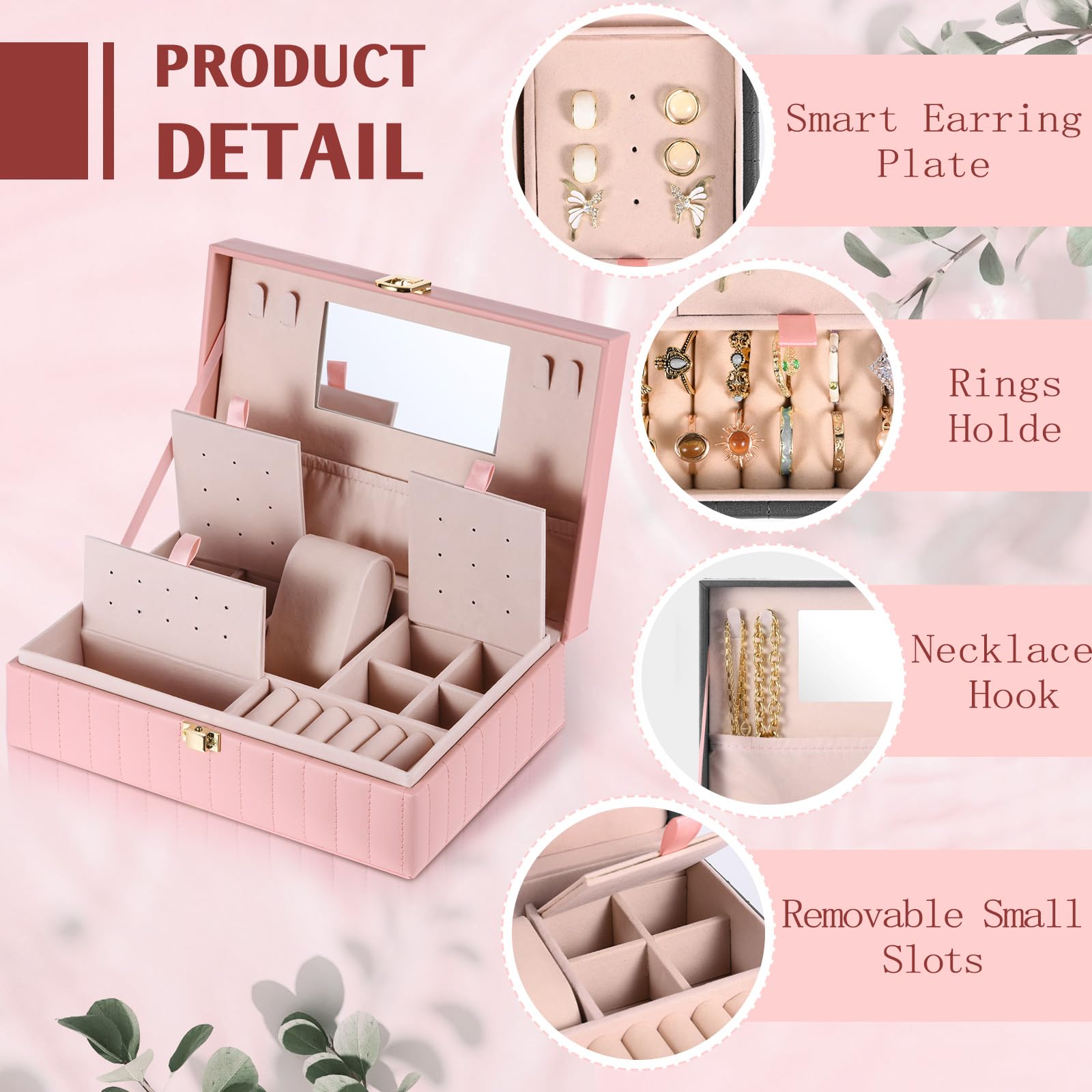 - 【Upgraded Jewelry Box with Mirror & Large Capacity】This personalized customized jewelry organization box is innovatively designed. It features a built-in mirror for convenience and a newly expanded, large-capacity compartment specifically for earrings, alongside other upgraded storage spaces to keep your collection tidy and accessible.