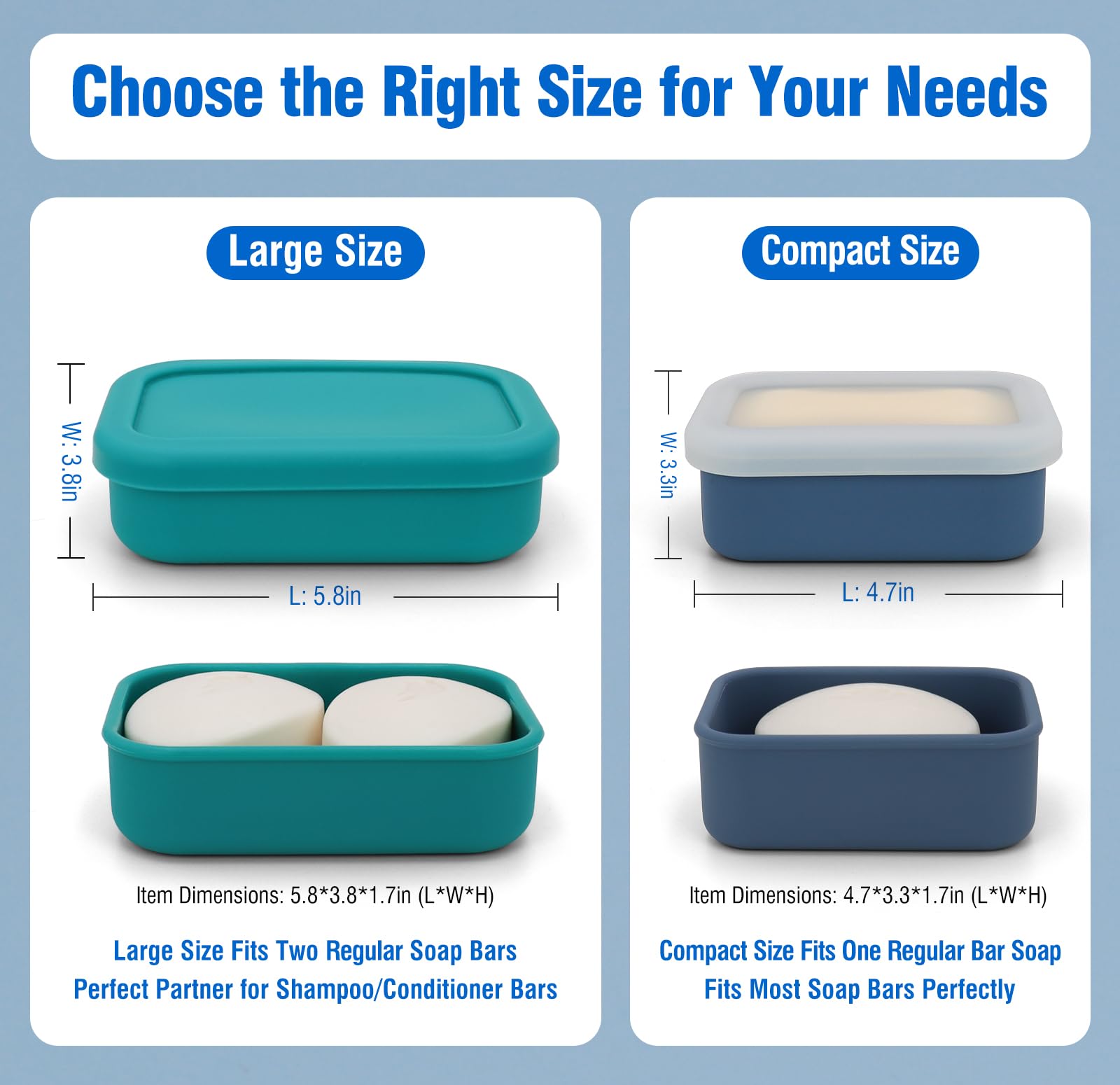 - Large Capacity and Versatile: Our travel soap dish can accommodate up to two 3.75 oz bar soaps, making it ideal for carrying shampoo bars, conditioners, and more. Suitable for travel, camping, gym, bathroom, RV, and dormitory use.