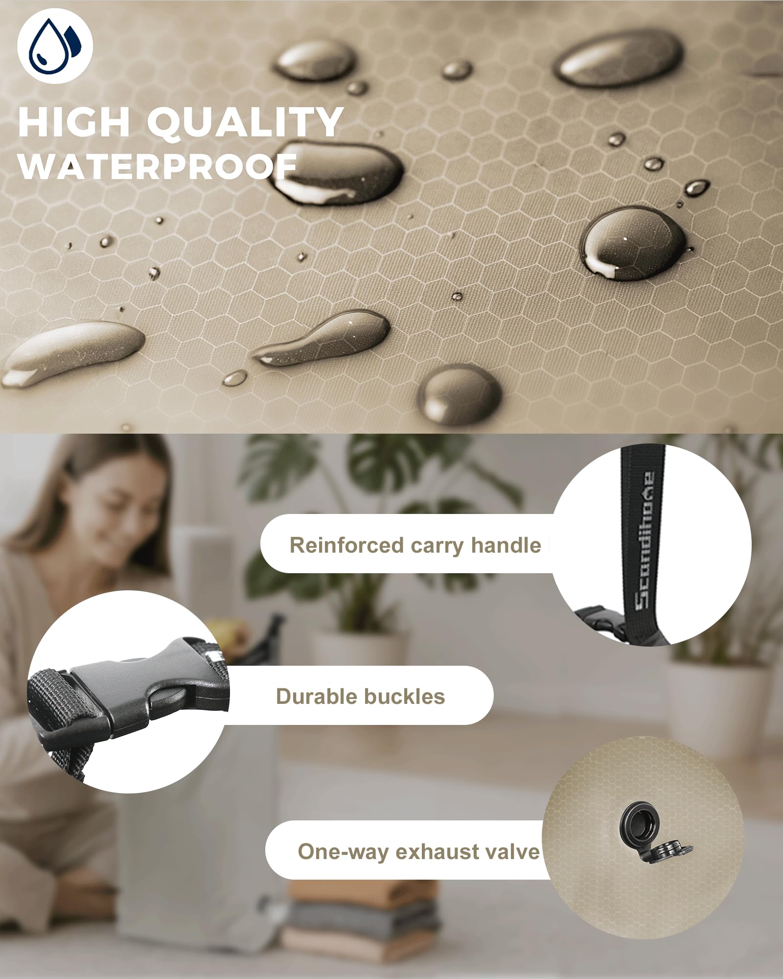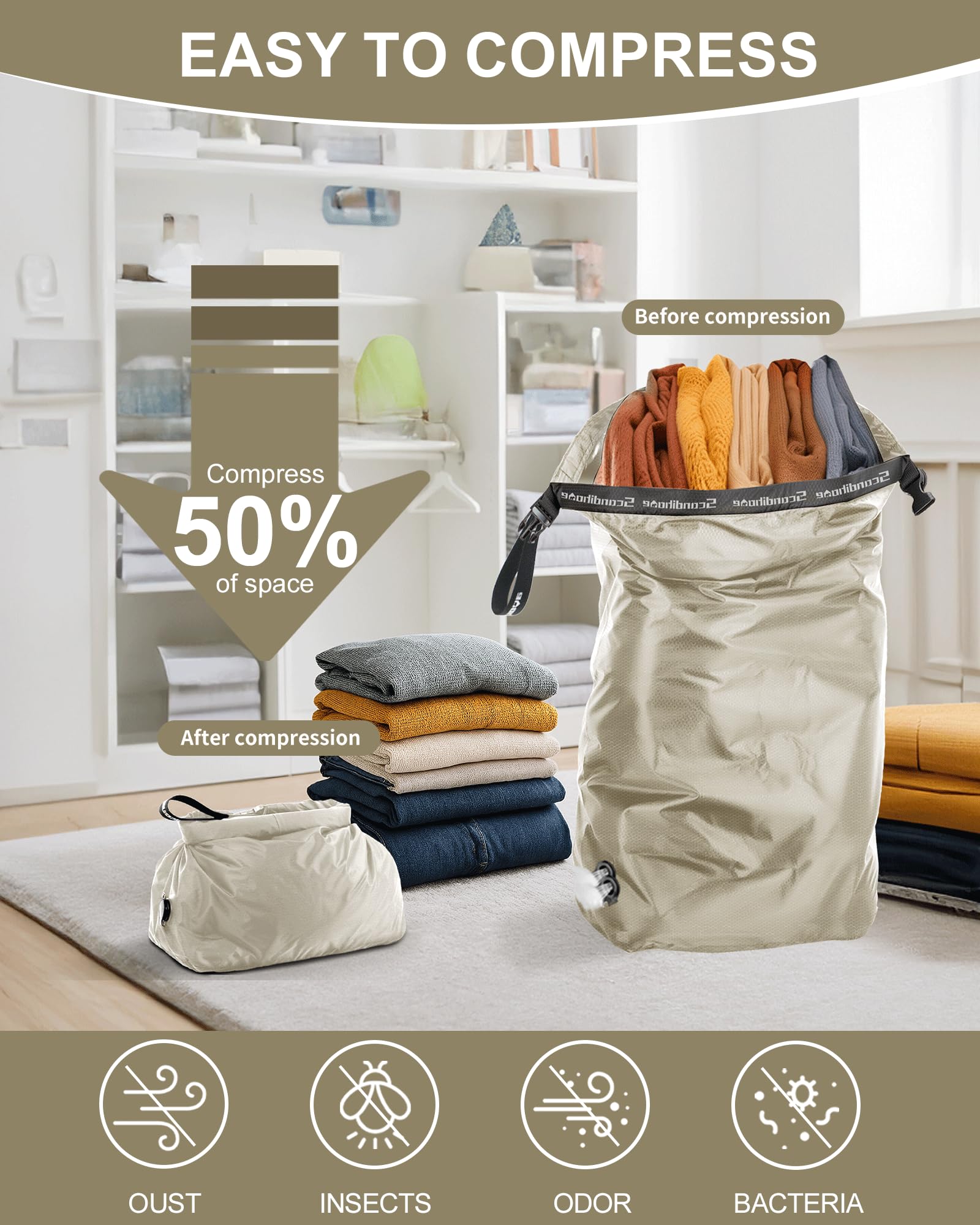 - Space-Saving Compression: Save up to 50% space with this pump-free Laundry Bag. Press to release air easily, and enjoy its lightweight 4.9 oz design. Includes a roll-top buckle, sturdy handle, and one-way valve for effortless compression and portability.