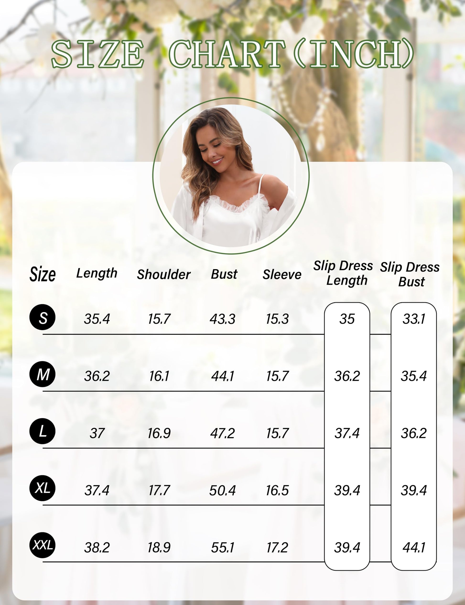 - Tailored to Flatter with Grace: Designed with a pleated lace V-neckline and an A-line silhouette, the slip dress hugs just right. The bridal robe set robe flows with kimono sleeves and a waist tie for effortless charm. A stylish pick among top bridal robes and bridesmaid robes