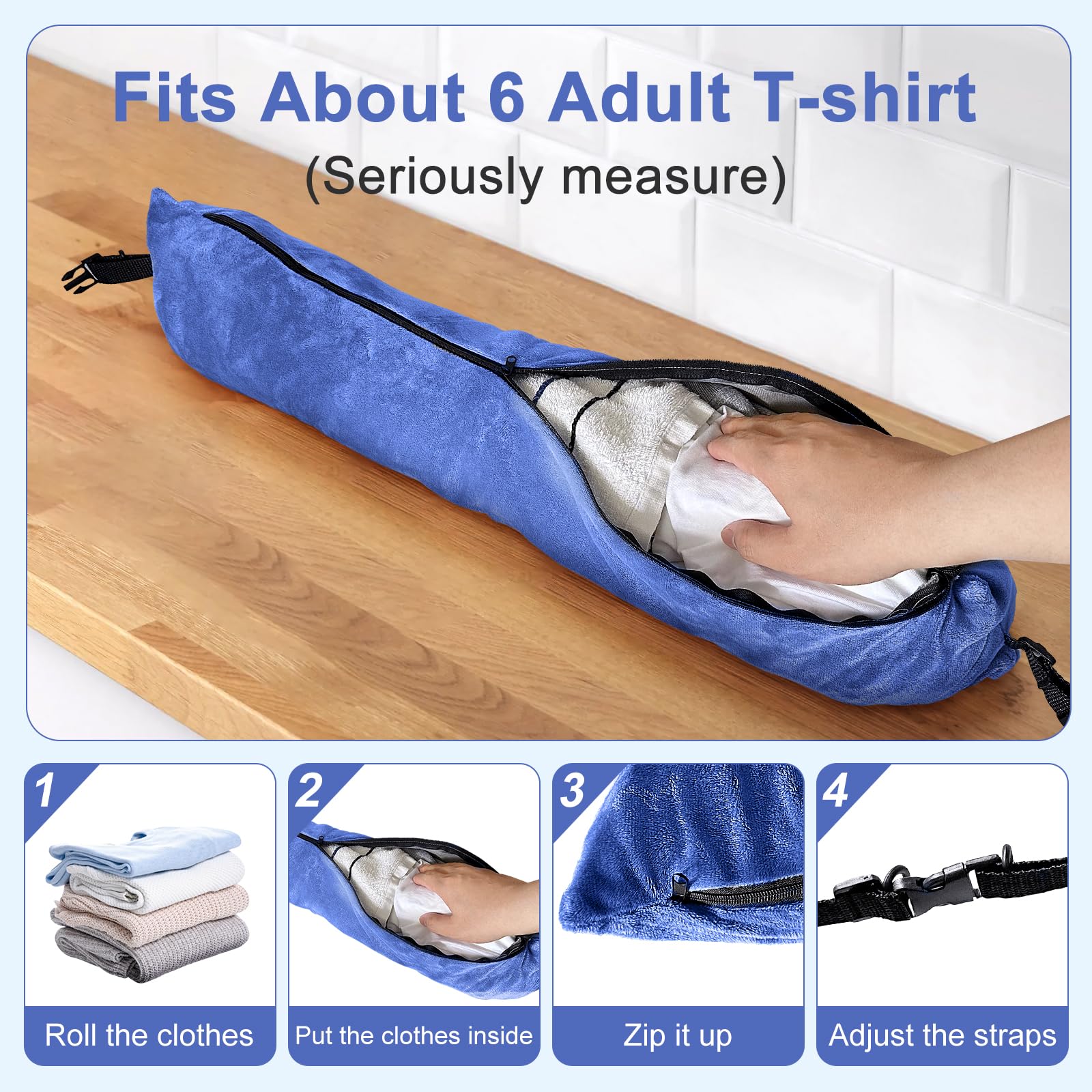 - 【Space】The travel pillowis designed for comfort around the neck and can hold 4 adult t-shirts. When fully packed, it expands to fit up to 6 adult t-shirts (measured and tested).