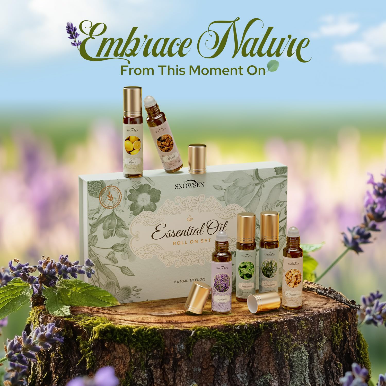 Essential Oils Roll on Set, Aromatherapy Oils with Roller Ball for Skin, Natural Essential Oil Roller Gift Set with Lavender, Peppermint, Frankincense, Eucalyptus, Lemon, Myrrh