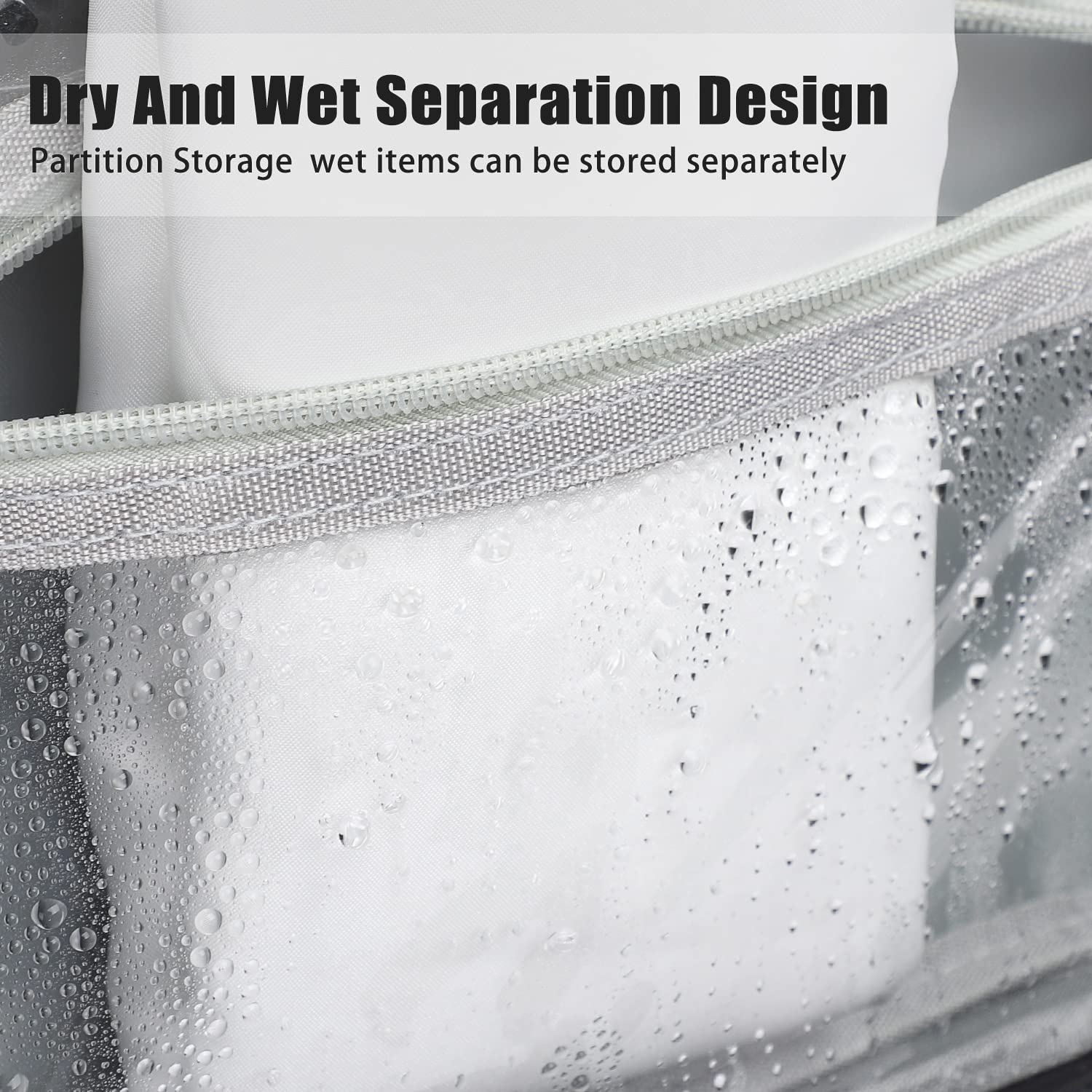 - Waterproof & Wet/Dry Separation: Etercycle's toiletries bag is made of superb quality nylon oxford materials and waterproof coating that can protect your toiletries from water damage and keep away from chaos.Clear pockets combines with mesh compartment, wet items can be placed in clear pockets to keep other pockets dry