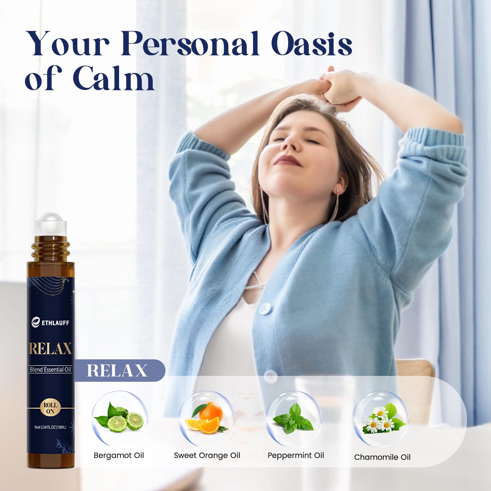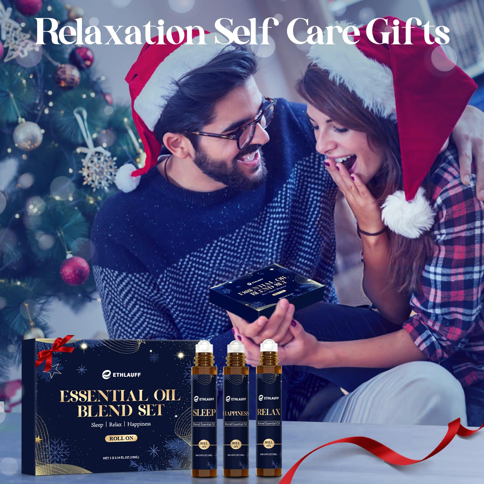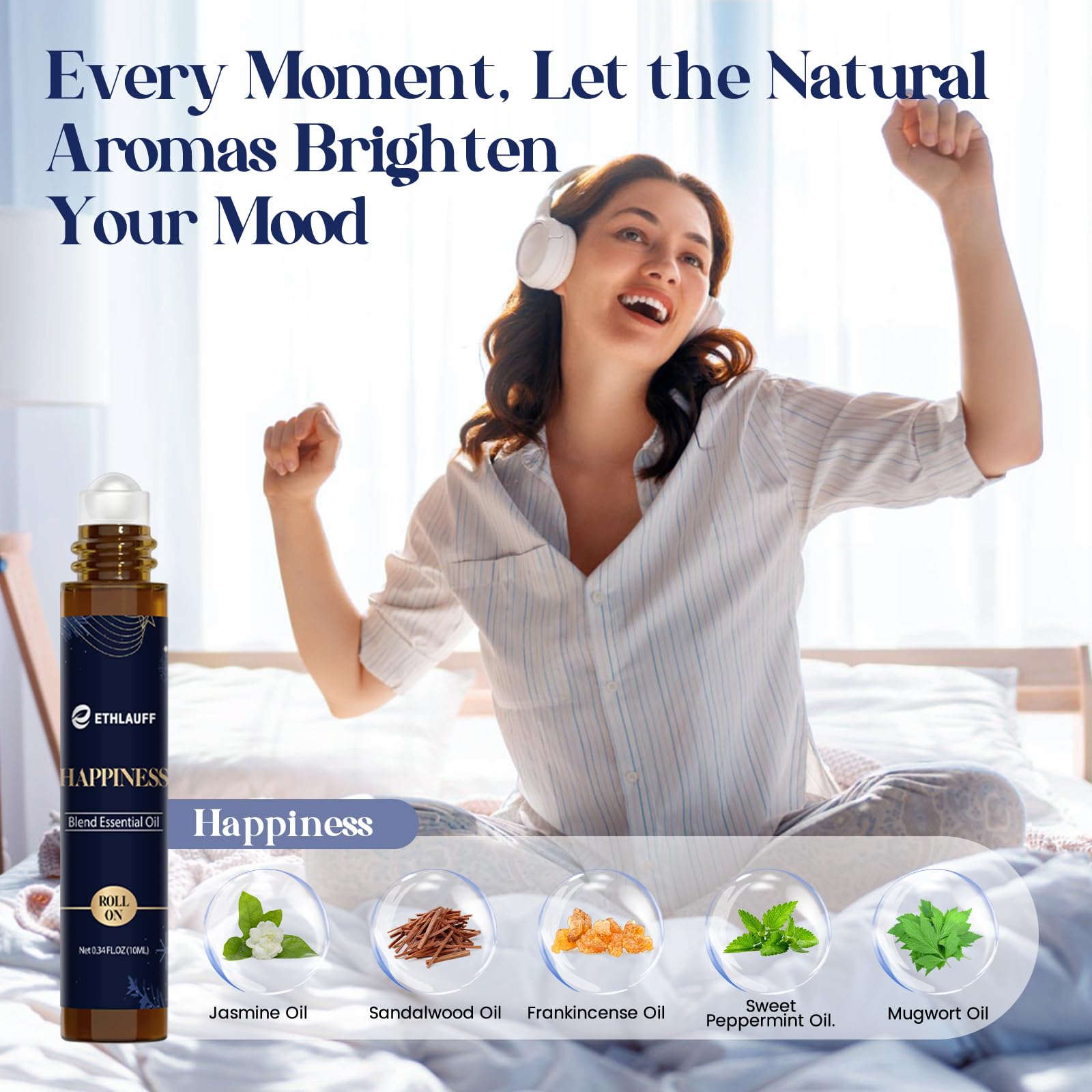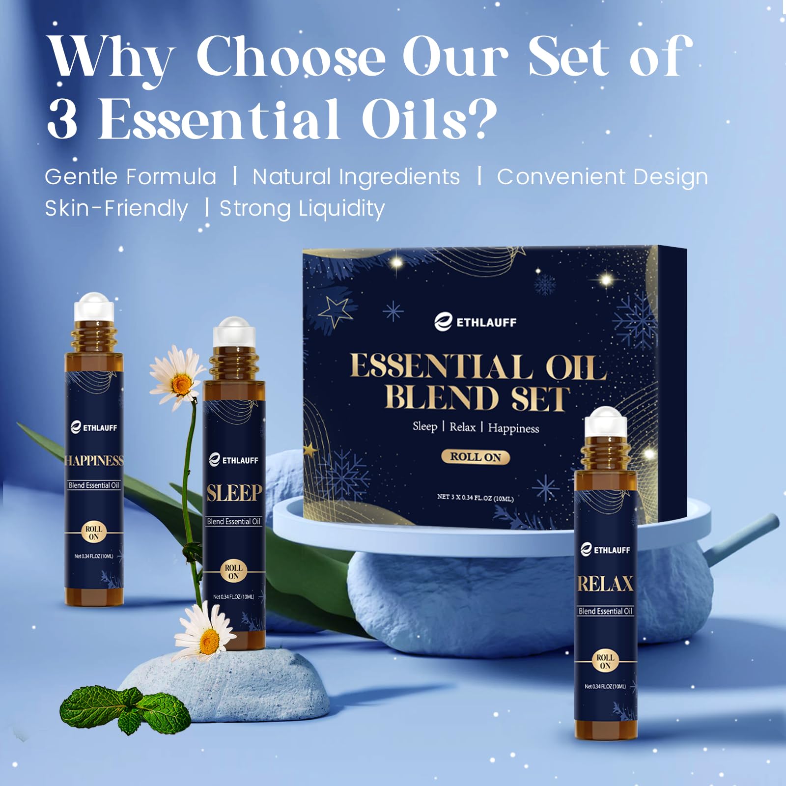 Ethlauff Essential Oil Roller Set, (Sleep, Relax, Happiness) Aromatherapy Roll On for Body Skin Care, Home - Natural Aromatherapy Gift, Relaxtion Gift, Stress Relief Gift for Women and Men