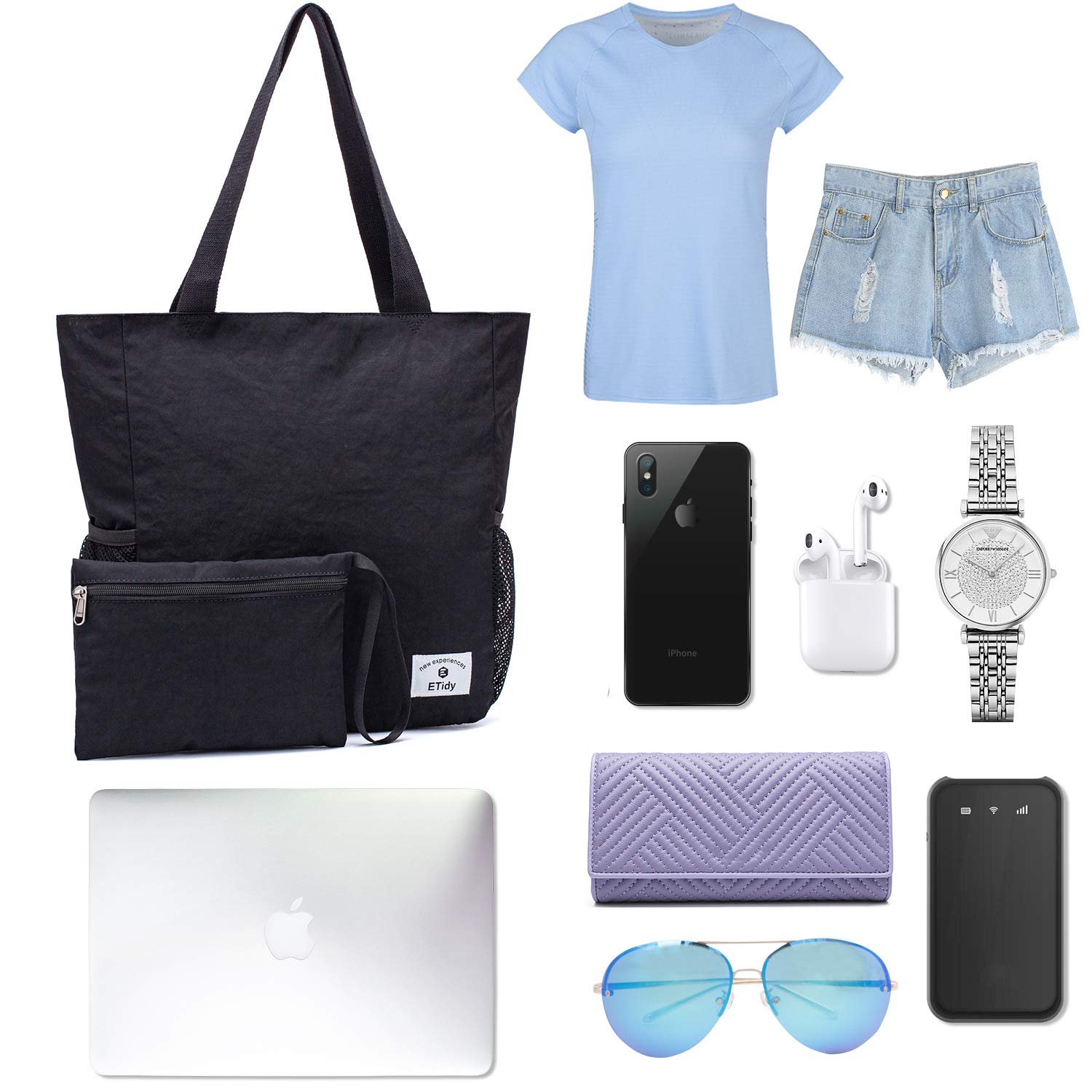 - ETidy large capacity travel waterproof tote bag with zippers. This is a 2-in-1 design bag. The large tote bag can be folded into a small bag, which is very convenient to carry.