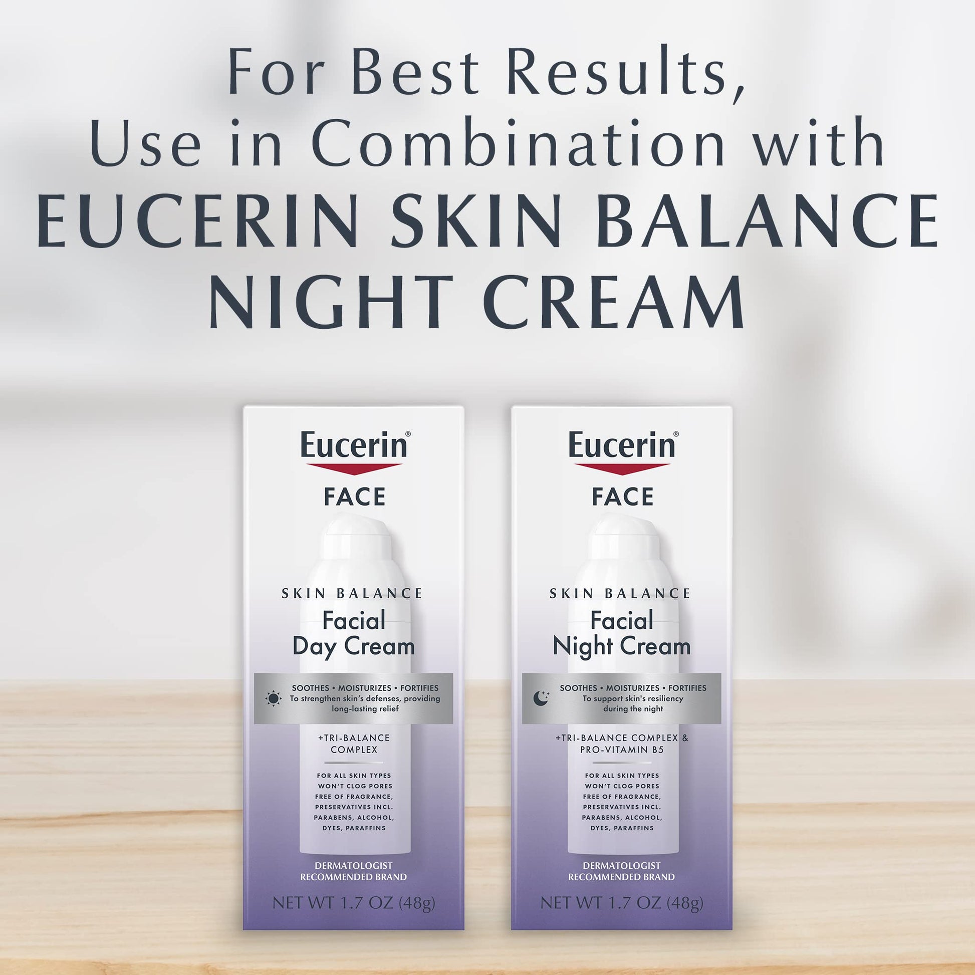 - TO USE: Smooth this Eucerin daytime face lotion onto your face and neck daily; for best results, use with Eucerin Skin Balance Night Cream