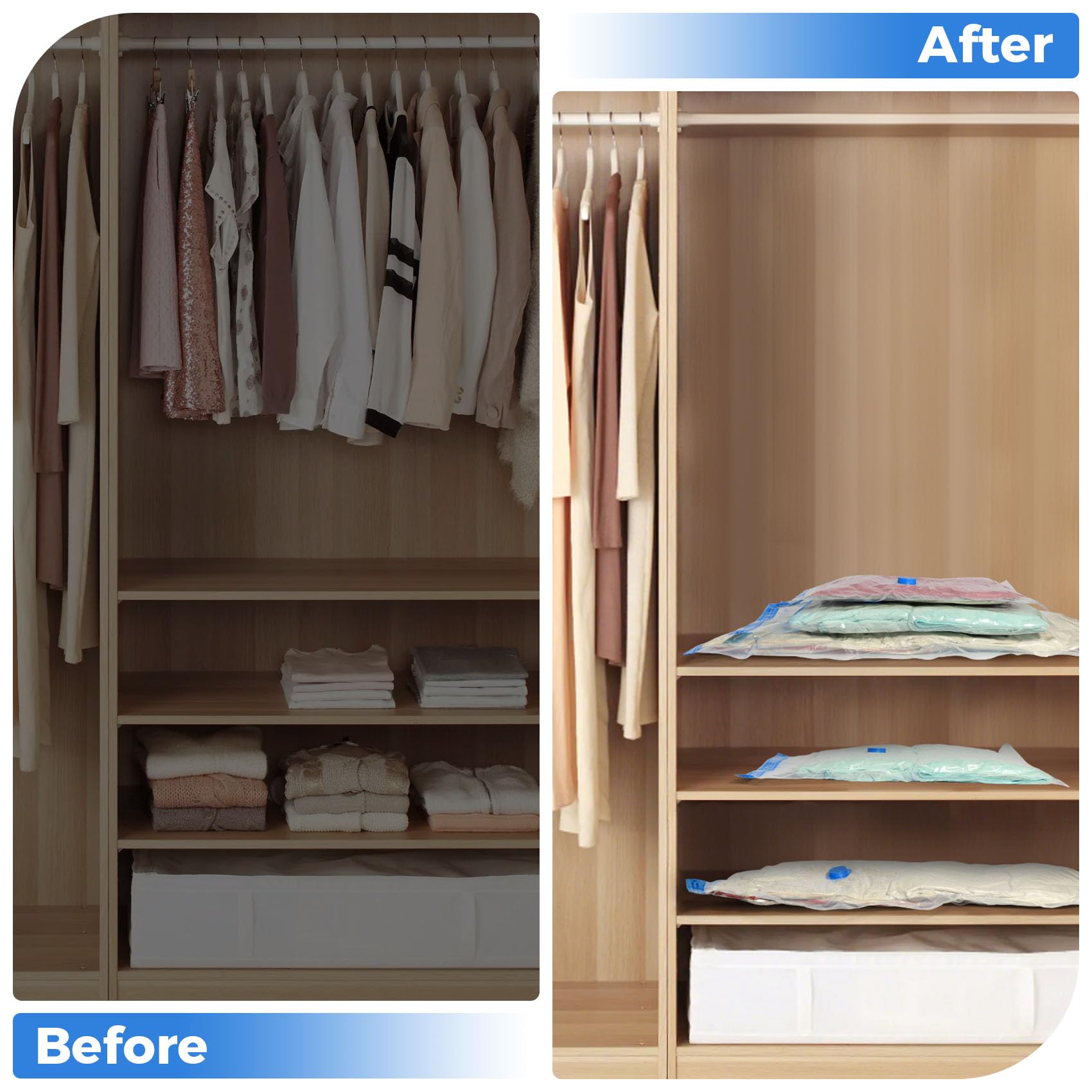 - Space Saver Bags: These compression bags for travel serve both travel and home storage needs, dramatically reducing bulk to maximize luggage capacity; The travel-specific sets include a small cordless electric pump for effortless air removal and compression; These space saver vacuum storage bags are ideal for home storage, seasonal rotation, and luggage optimization, easily saving 80% space