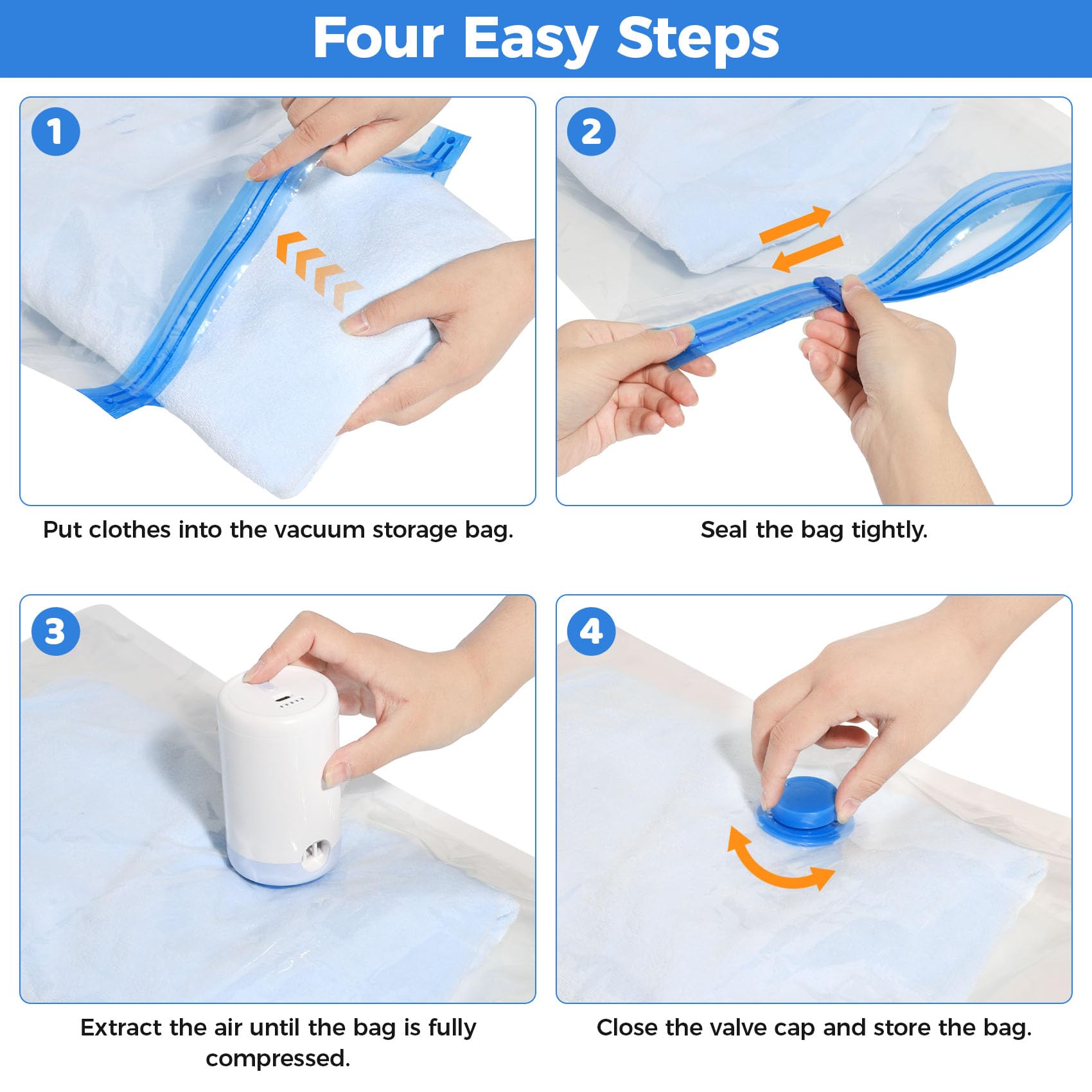 - Portable & Easy to Use: These travel vacuum bags with pump are simple to use, place your clothing or belongings inside, securely close the bag's zipper, extract air using the electric pump, and finally tighten the sealing cap; Designed specifically for luggage, these travel vacuum bags for luggage maximize packing efficiency during travels, allowing convenient organization of garments and essentials wherever you go, Back to School Supplies storage becomes remarkably simple