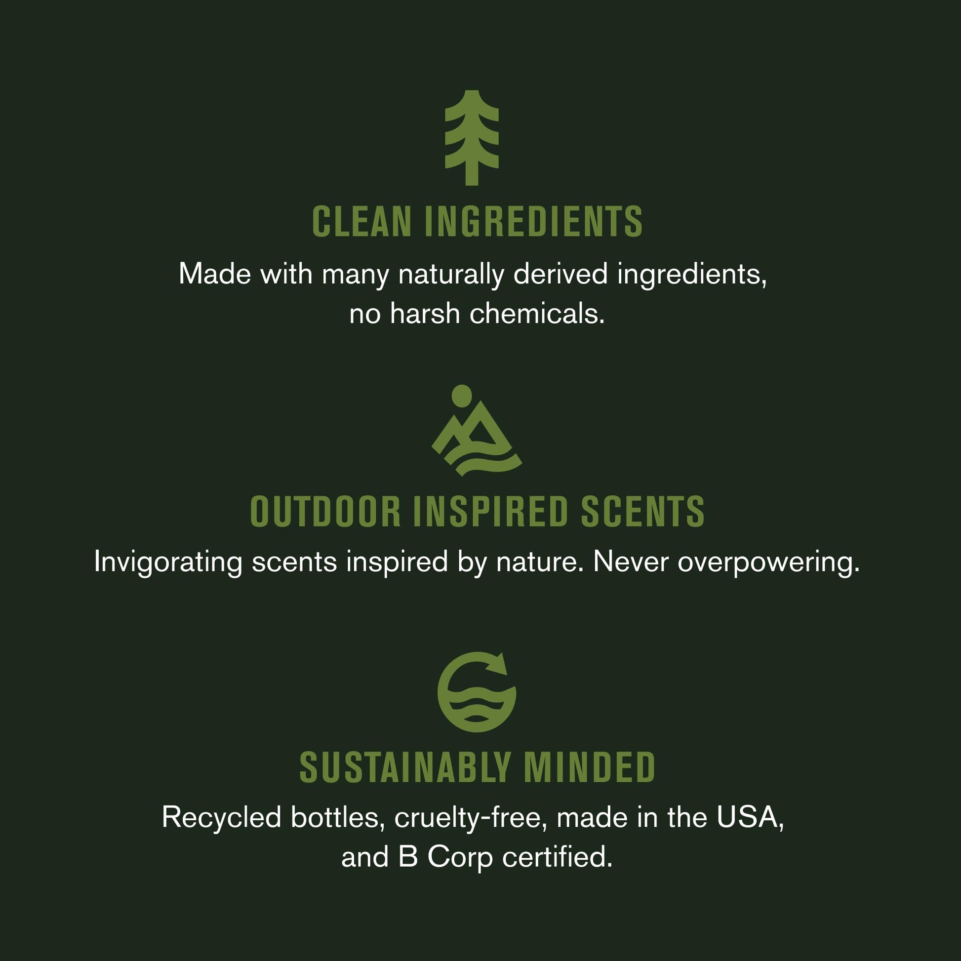 - OUTDOOR INSPIRED SCENTS: Sandalwood and Amber with a rich, complex finish; Sea Minerals and crisp Citron with a complex, fresh finish; Cedar and herbaceous Red Sage with a peppery rugged finish.
