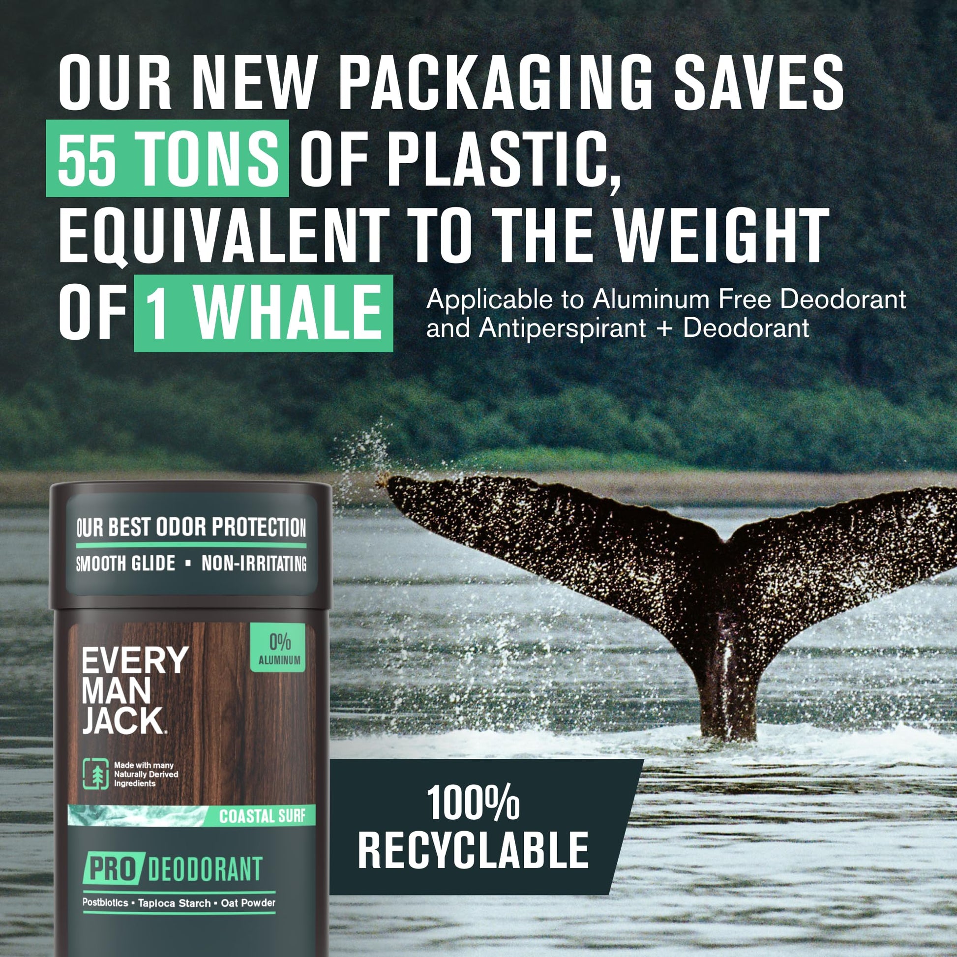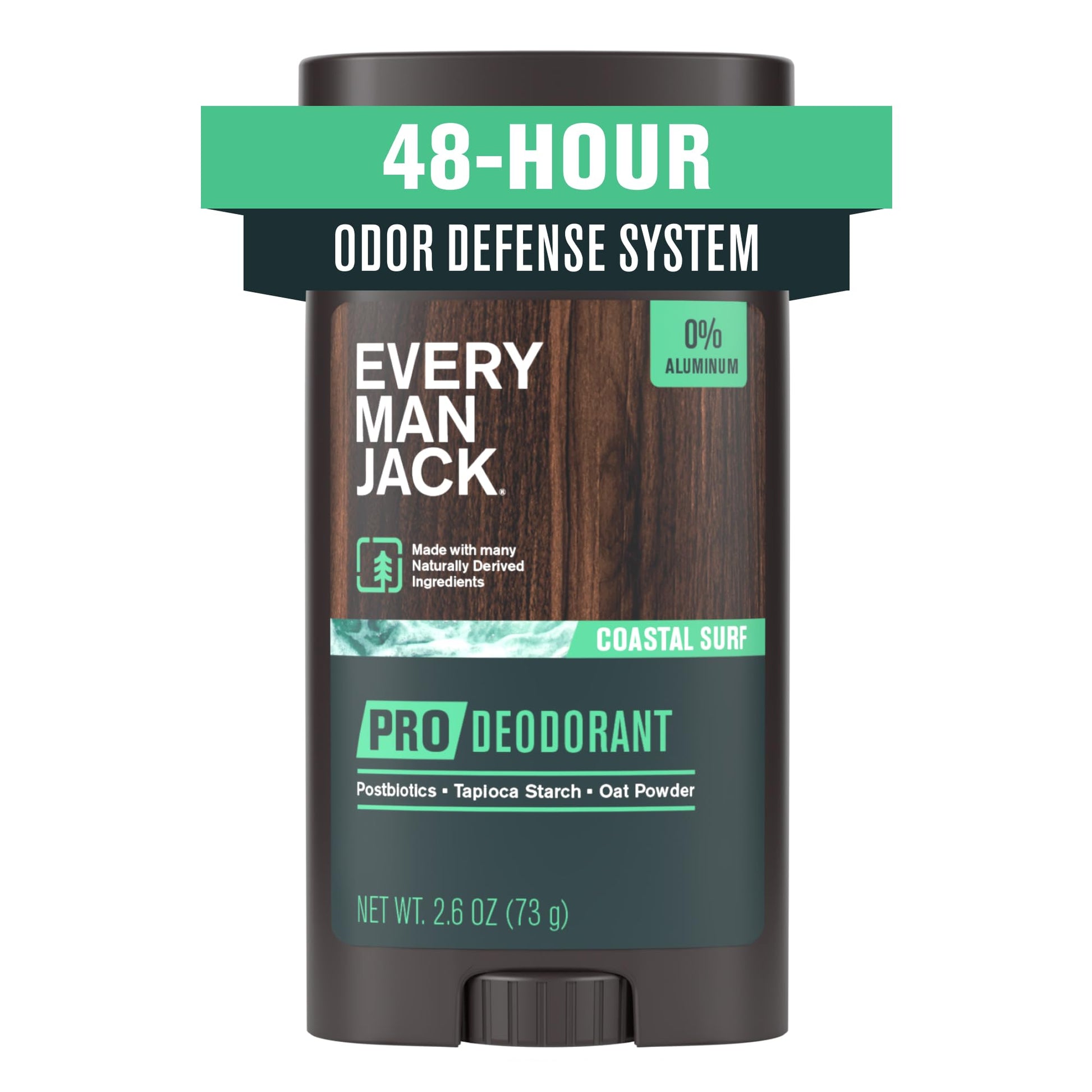 Every Man Jack Men's Pro Deodorant - 48-Hour Odor Defense Blend - Aluminum Free - Contains Postbiotics, Tapioca Stach & Oat Powder - Coastal Surf Scent - 2.6 oz (1 Pack)