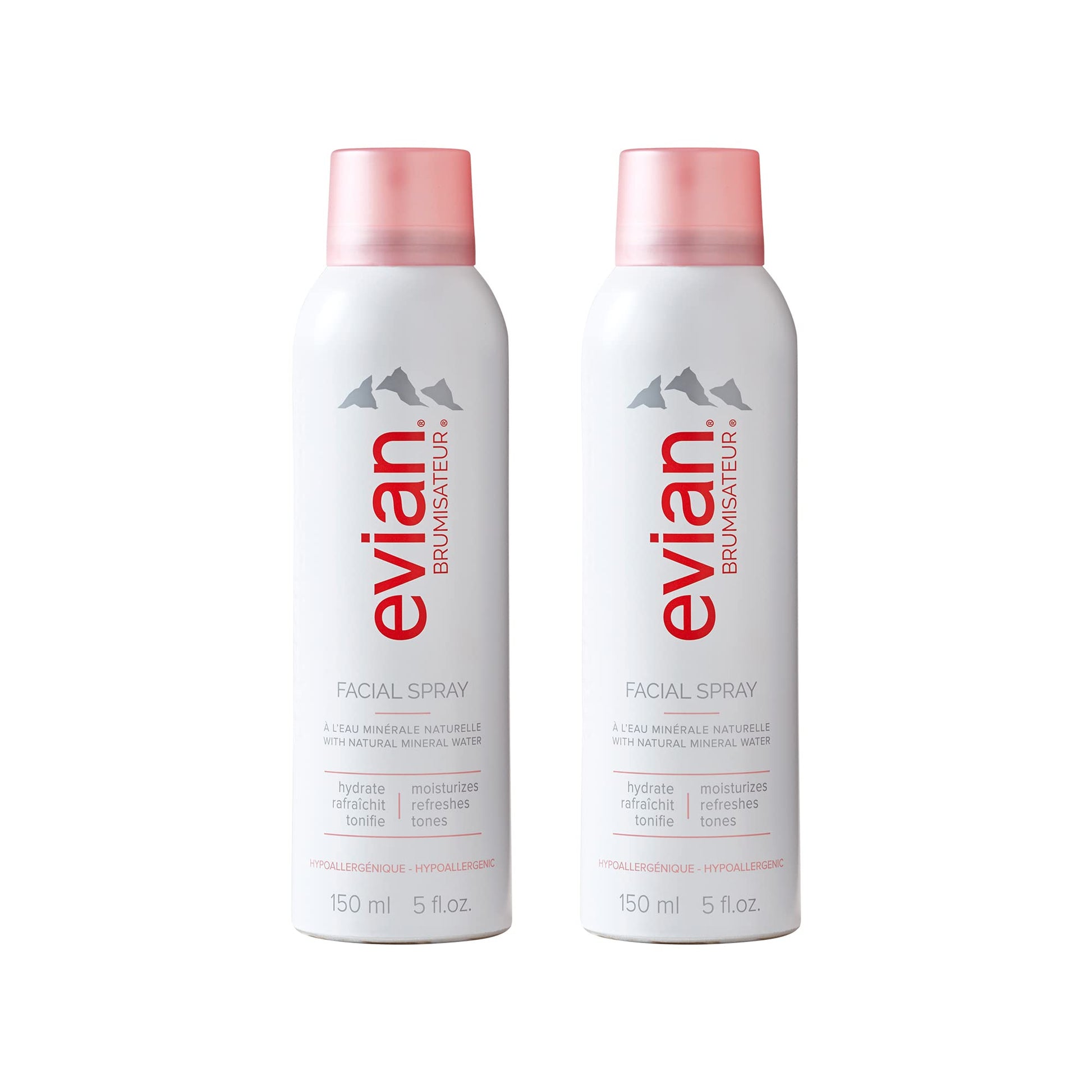Evian Facial Spray 5 oz Duo Hydrating Mineral Water Mist for Face & Skin Refreshes Makeup, Sets, & Tones Facial Spray Twin Pack for Daily Skincare and Lightweight Facial Moisturizer Mist