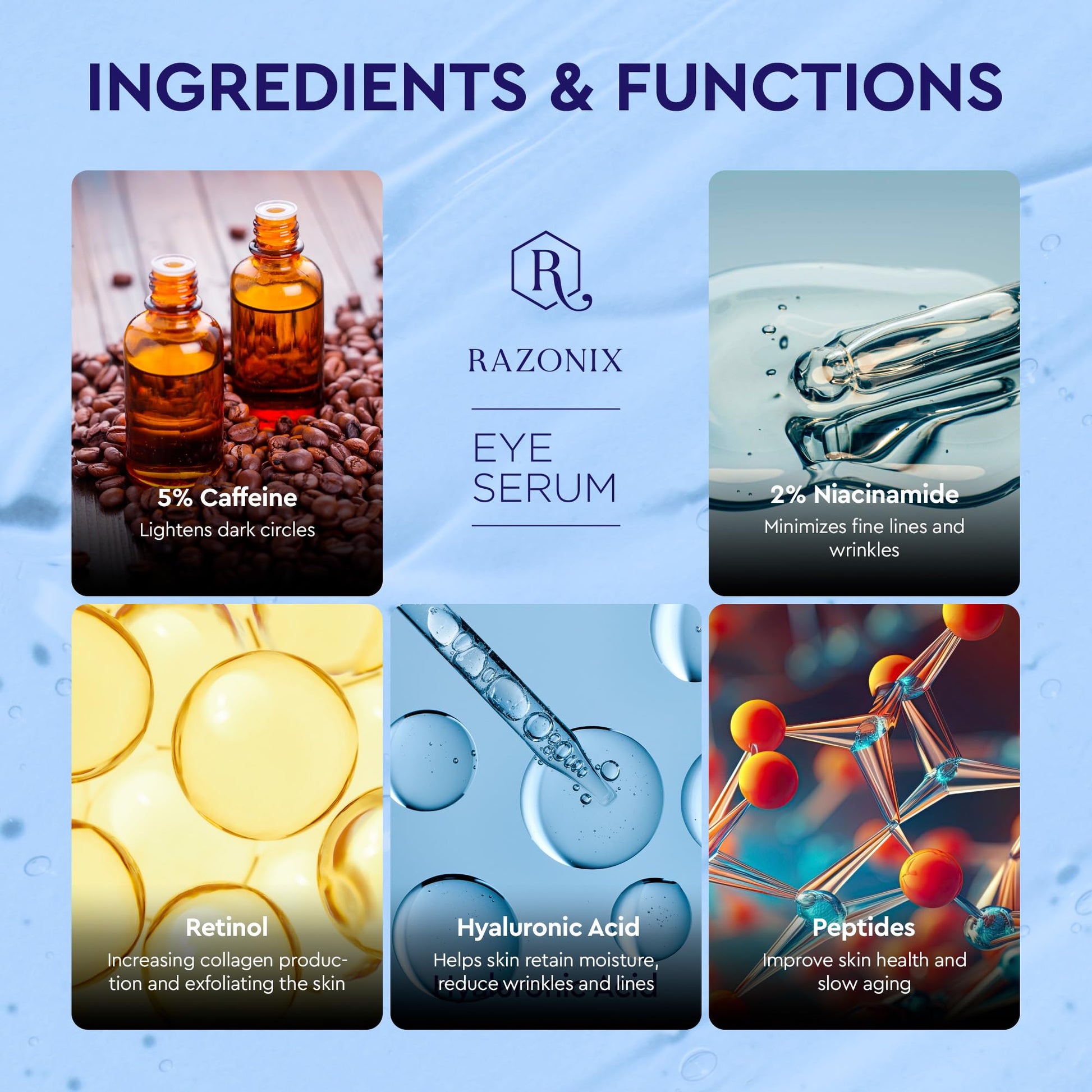 - Effective Eye Bags Treatment for Men and Women: Our caffeine-infused eye cream and roller effectively target puffiness, dark circles, and baggy eyes, making it a versatile solution for all.