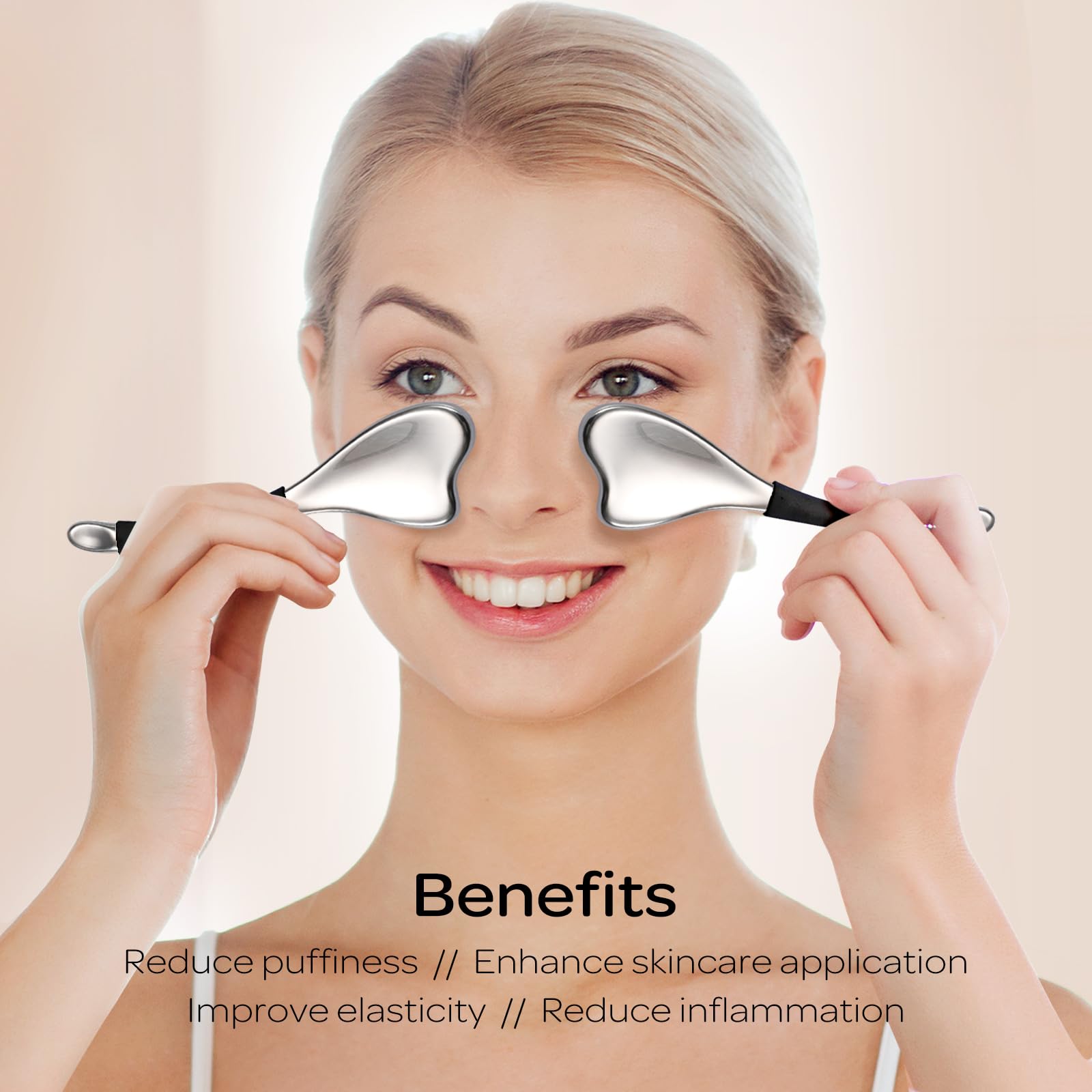 Fabludo 3-in-1 Cryo Gua Sha Facial Tools, Ice Roller Globes for Women Face and Eyes Massager, Unbreakable Stainless Steel Face Sculpting Skin Care Tools, Esthetician Supplies with Carry Case