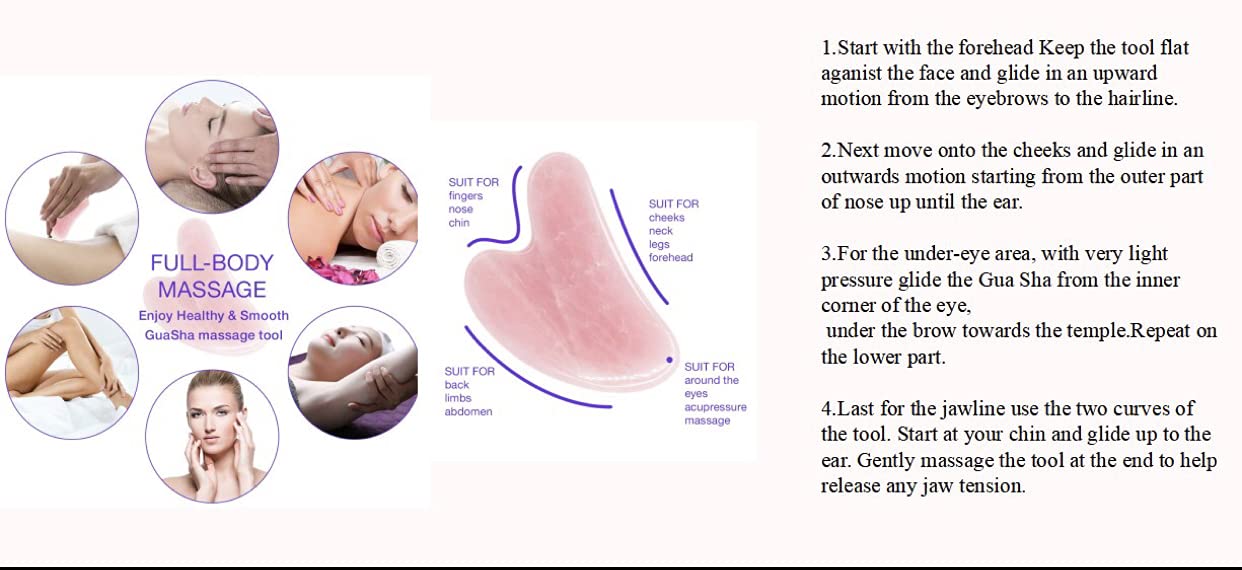 - ✔️ REVIVE & REJUVENATE YOUR FACE WITH GUA SHA FACIAL TOOLS – Use your skin care tools for face every morning and night as a facial massager for under eye bags or puffy eyes.