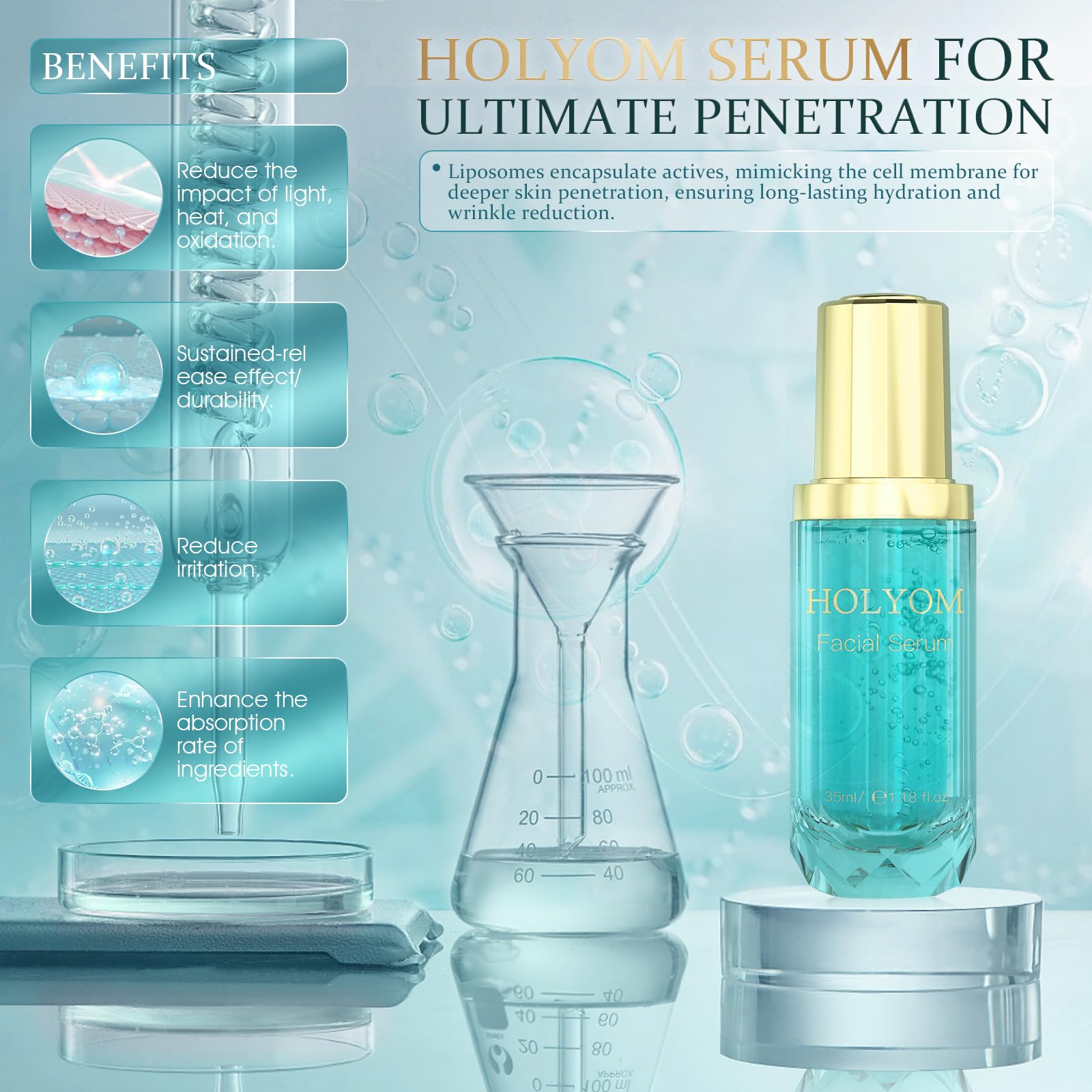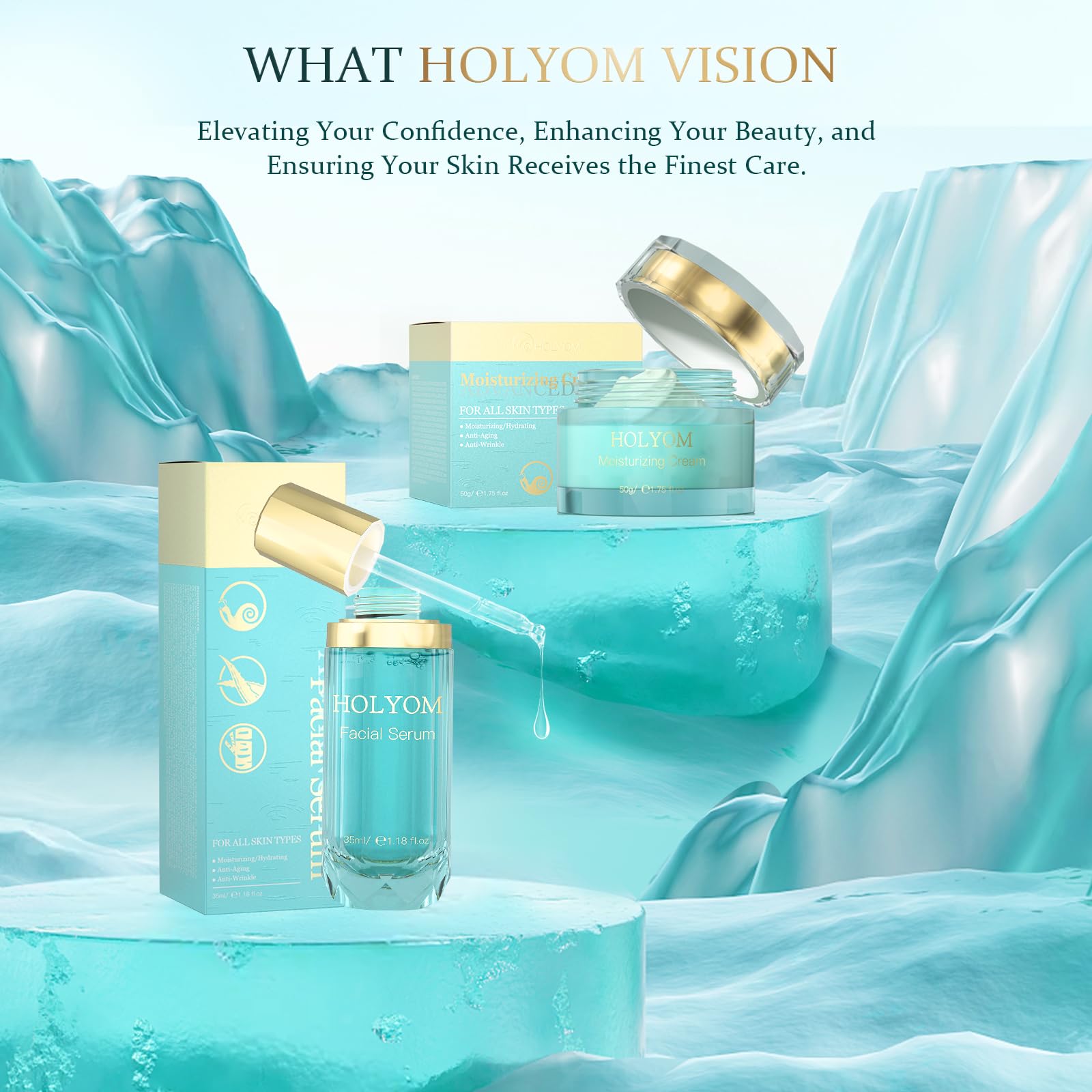 - Addresses Multiple Skin Concerns: HOLYOM facial serum targets various skin issues, including dark circles, fine lines, wrinkles, skin tone irregularities, and deep hydration. It significantly improves skin firmness, neck lines, elasticity, plumpness, texture, pores, and overall vibrancy, providing comprehensive Anti-wrinkle benefits.