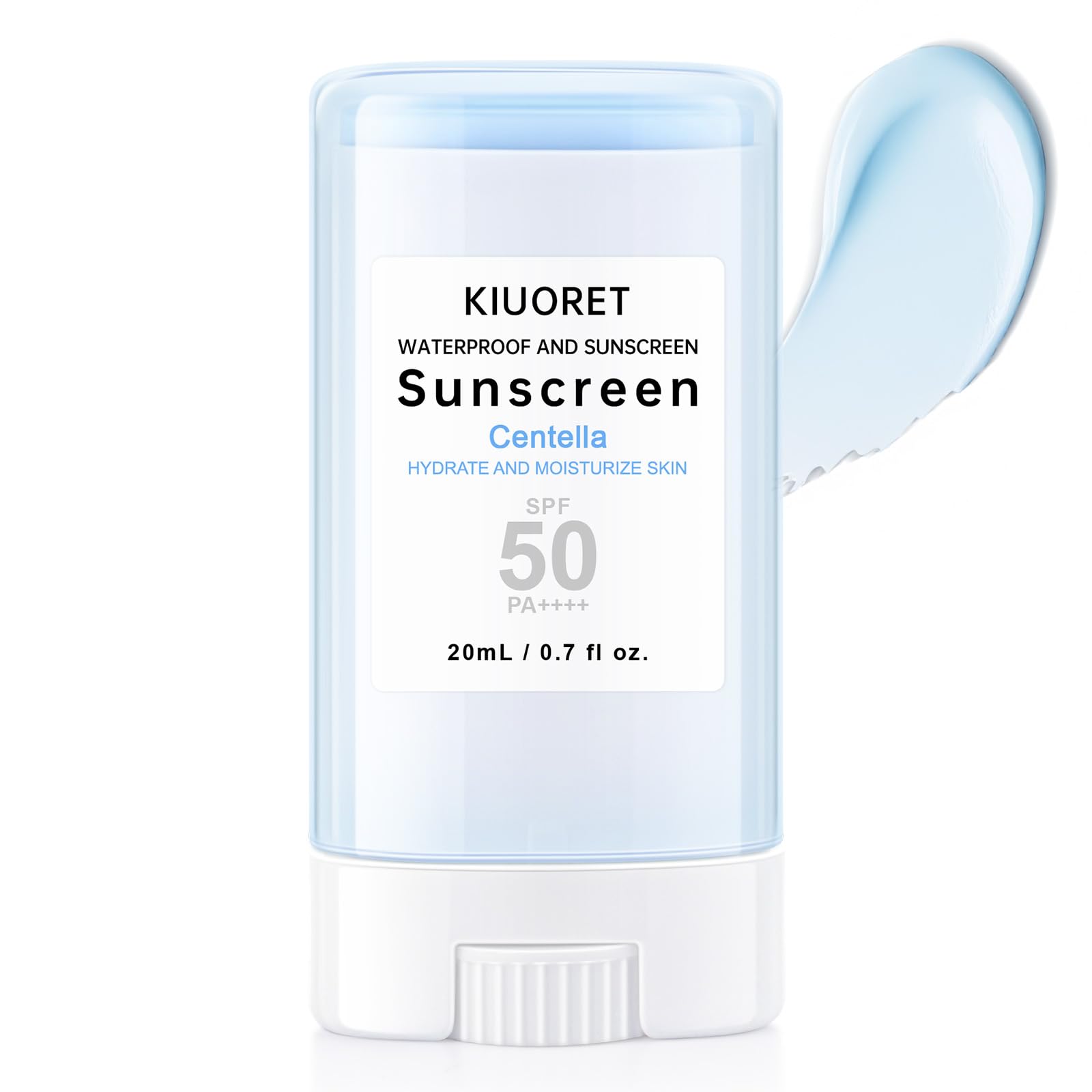 Face Suncream Stick with Centella SPF50+ PA++++, Sunscreen Moisturizer Travel Size 20 ml, Waterproof Long-Lasting, No White Cast, Lightweight to Absorb, Sunscreen Stick for All Skins