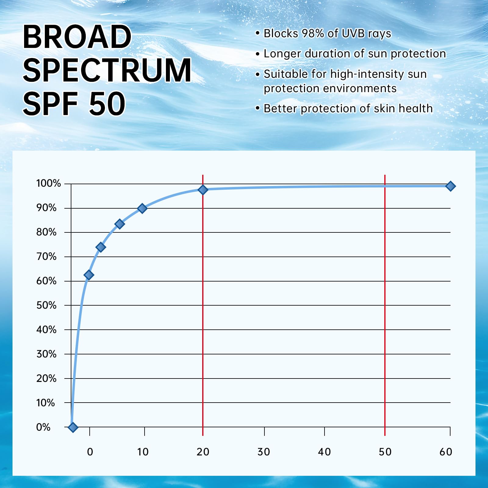 - Powerful Sun Protection: The sunscreen SPF 50 protects against up to 98% of UVA/ UVB rays, protecting the deeper layers of the skin from UV-induced aging, dullness and other damage. Enjoy the sun while maintaining healthy skin