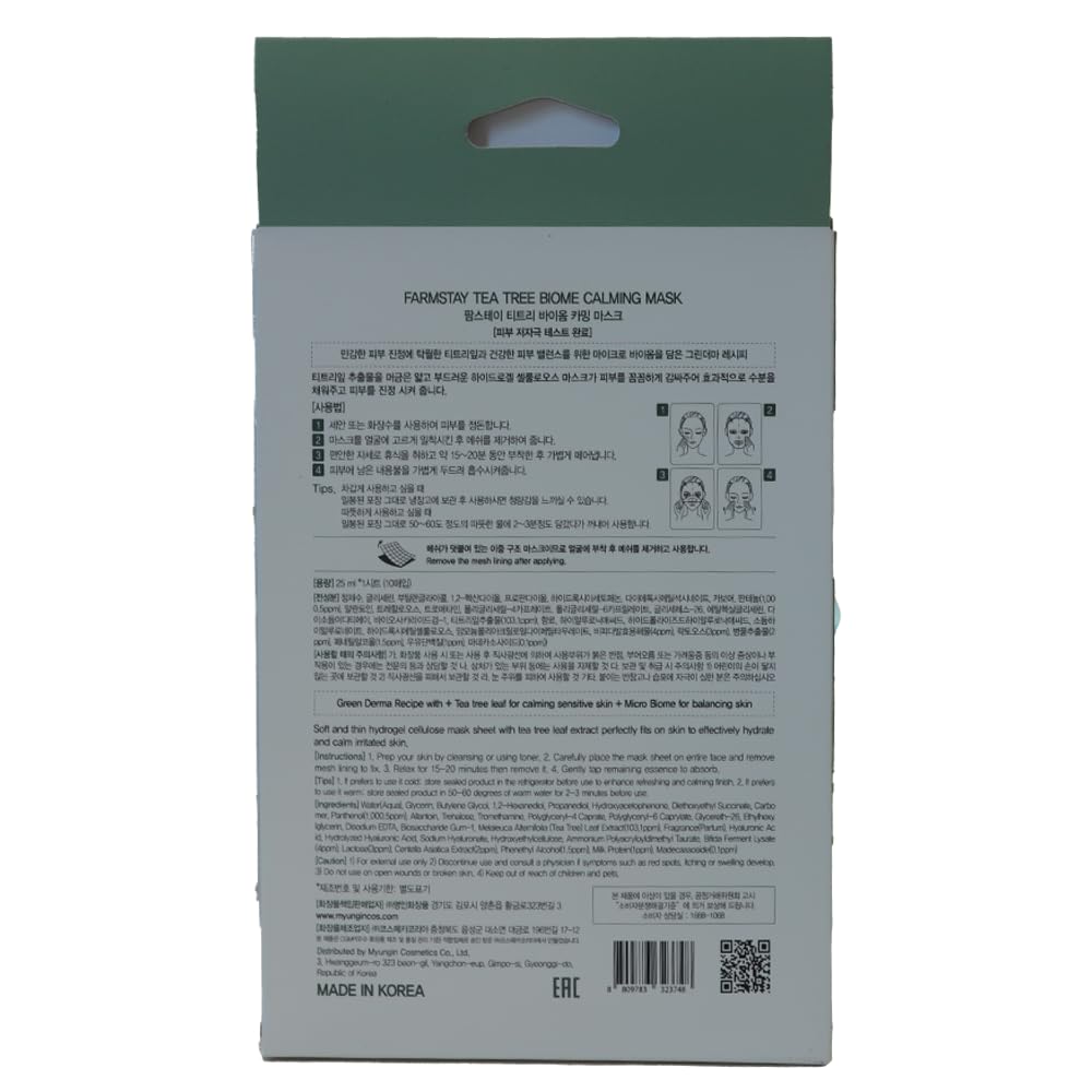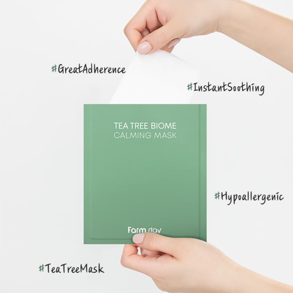 FARMSTAY TeaTree Biome Calming Mask -Daily Facial Gentle for Sensitive Skin, Korean Skin Care, Hydrating& Soothing, Acne Calming mask,100% cellulose, for Women,Men,Teenager,0.84 fl.oz.*10Sheets