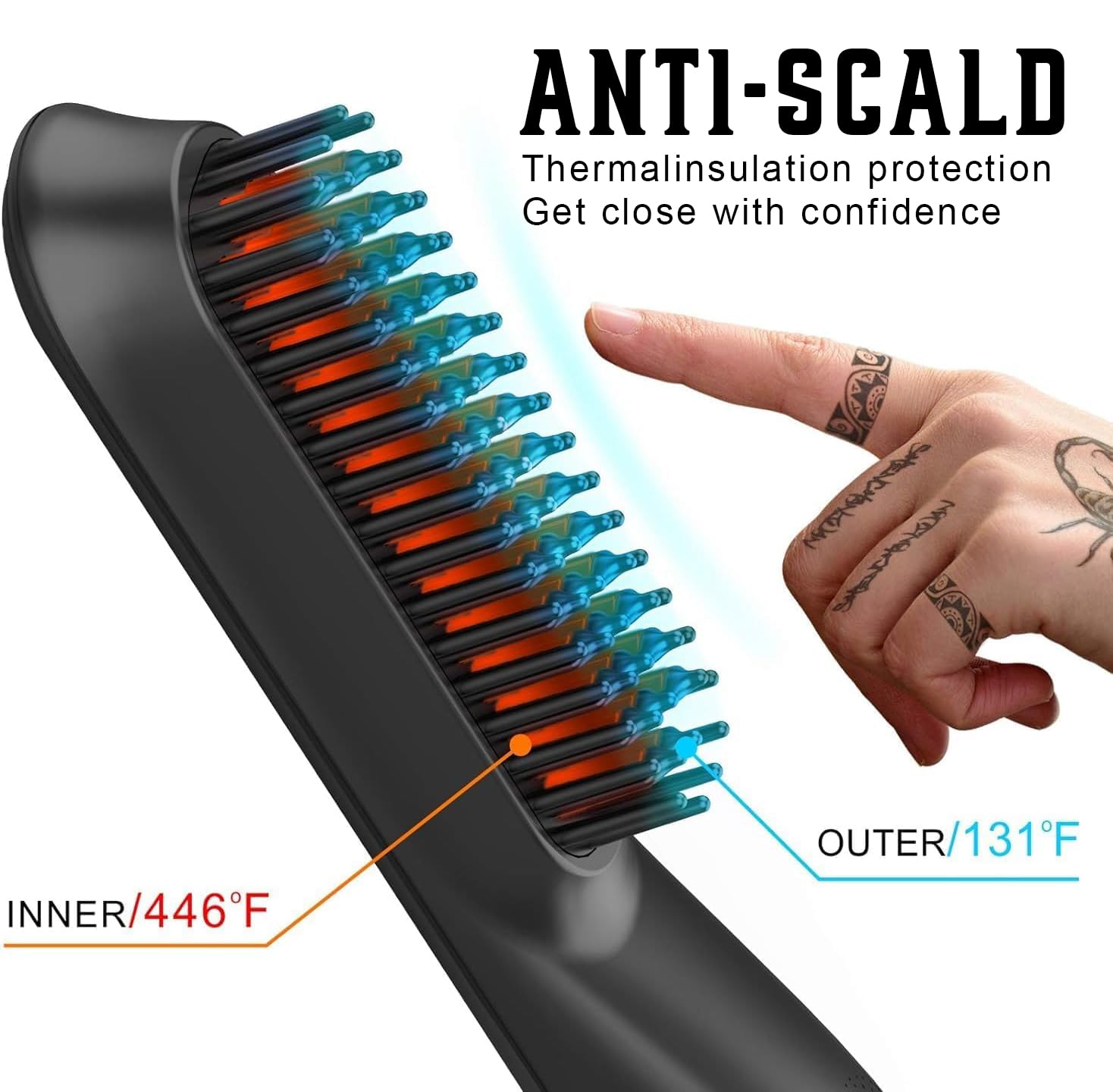 - ⭐SAFETY & COMPLIANCE: Beard straightener included with anti-scald ionic heated comb for men, features automatic power-off, UL approved beard straightener, heated beard brush safety for daily use