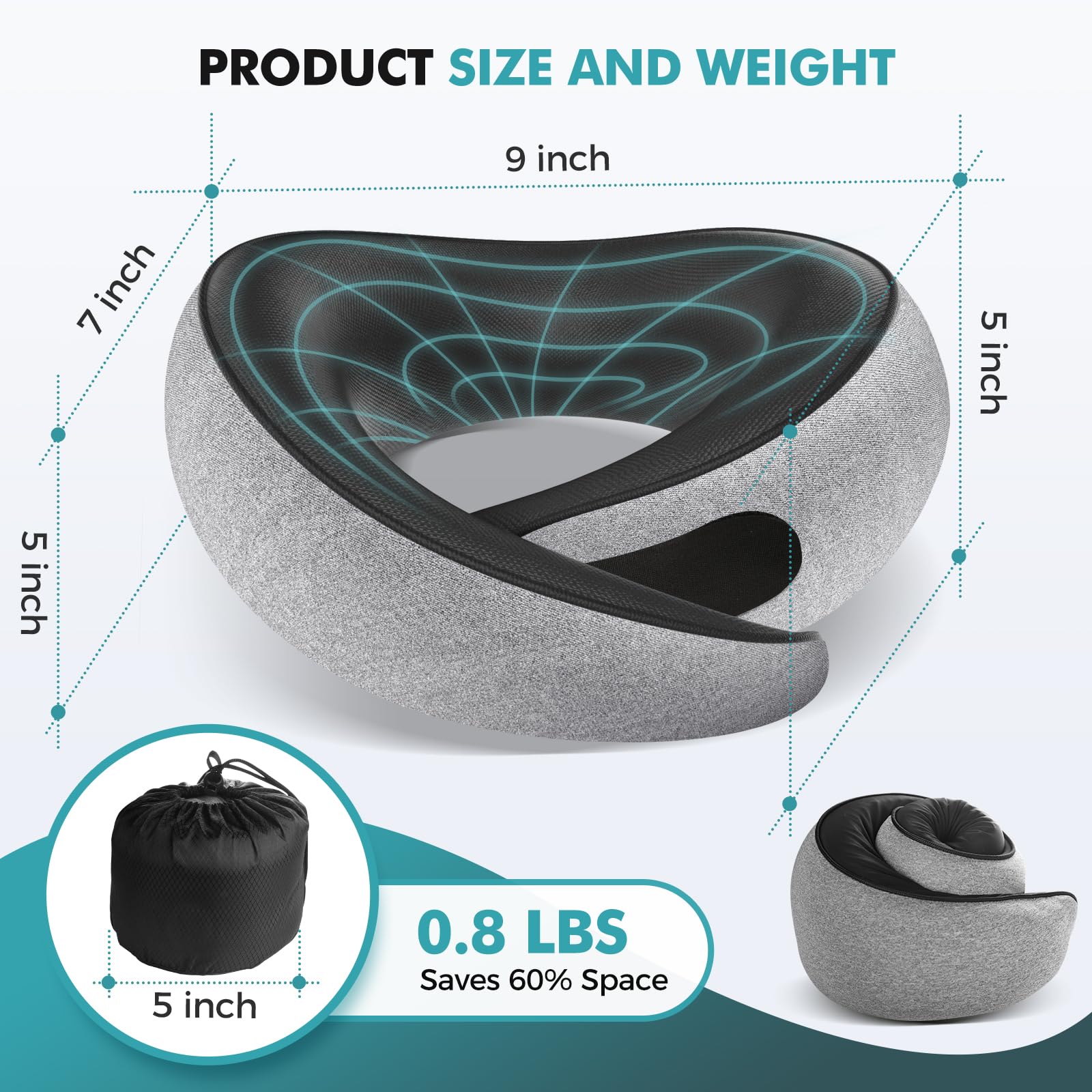 - Compact and Portable: Travel neck pillow weighs only 0.8 lbs and compresses to 40% its size with roll-up design. Premium storage bag with carabiner clip easily attaches to luggage handle or backpack. Ideal for travel and outdoor adventures
