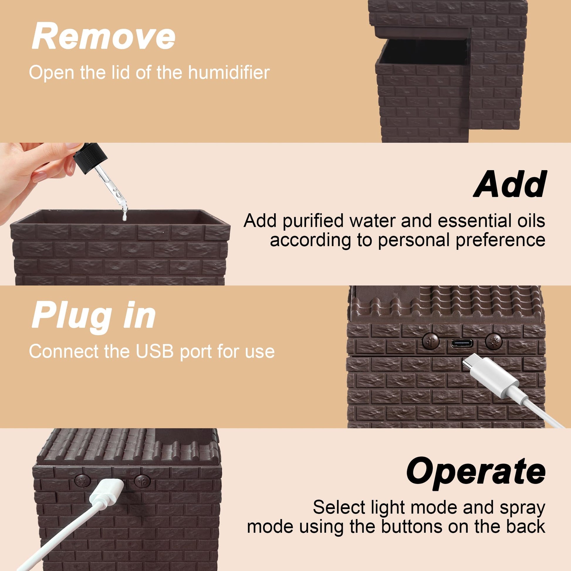 - 【Simulated Fireplace】The humidifiers for bedroom features a realistic brown house, with lifelike flame effect, creating a cozy and comfortable atmosphere.