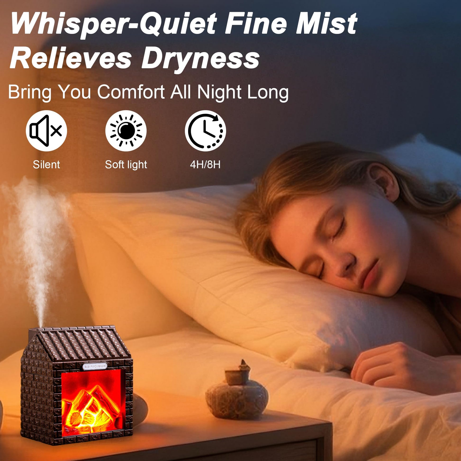 - 【Aromatherapy Diffuser】The fireplace essential oil diffuser with silent operation. Add your favorite essential oils to the bedroom essentials, effectively relieving fatigue.