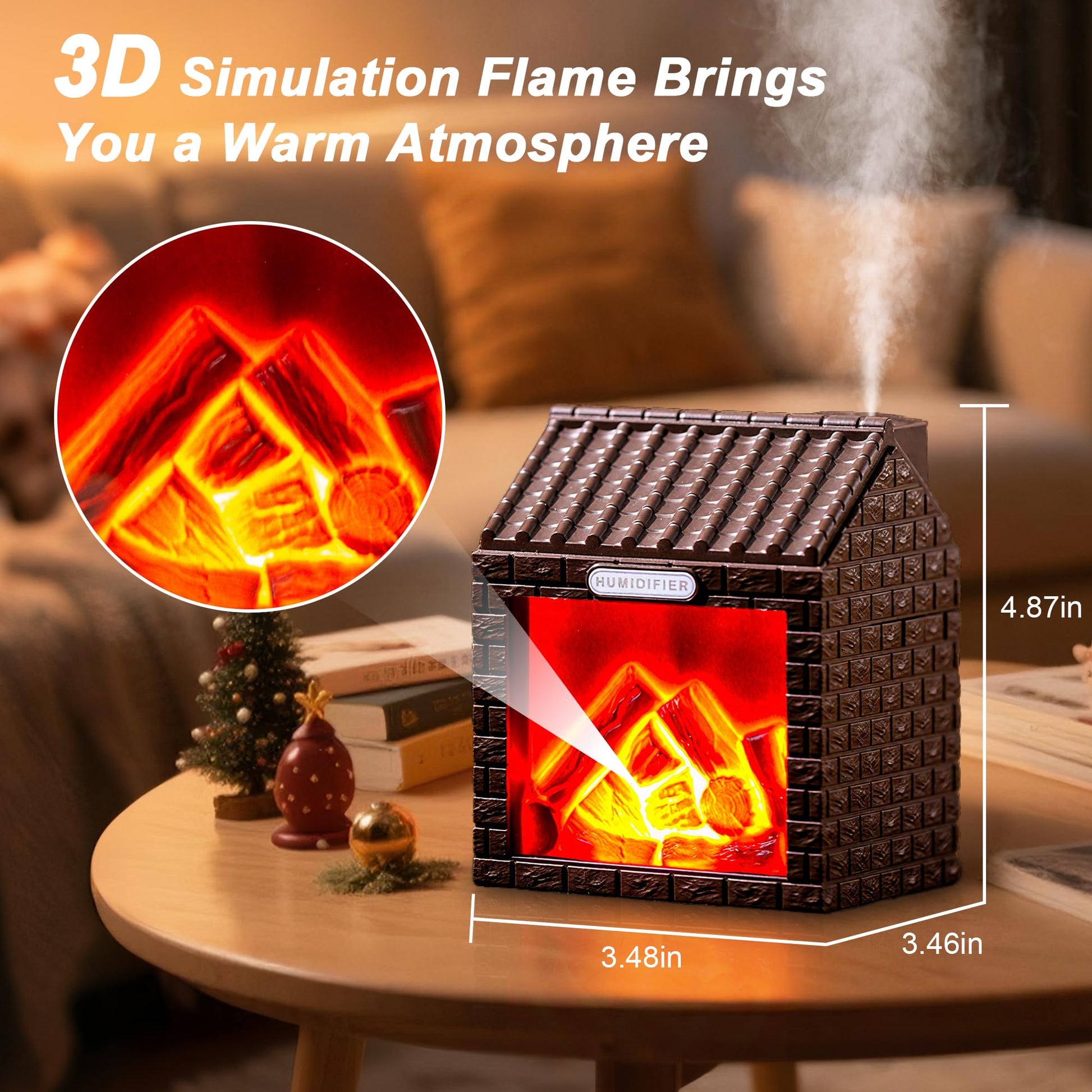 - 【Multi-Functional Design】This fireplace diffuser combines 3 functions in 1.The realistic flame lighting of the mini humidifier make it a soft nightlight; as an air diffuser, the desktop fireplace adds moisture to your space; and when essential oils are added, it becomes an aromatherapy diffuser, offering a comprehensive sensory experience.