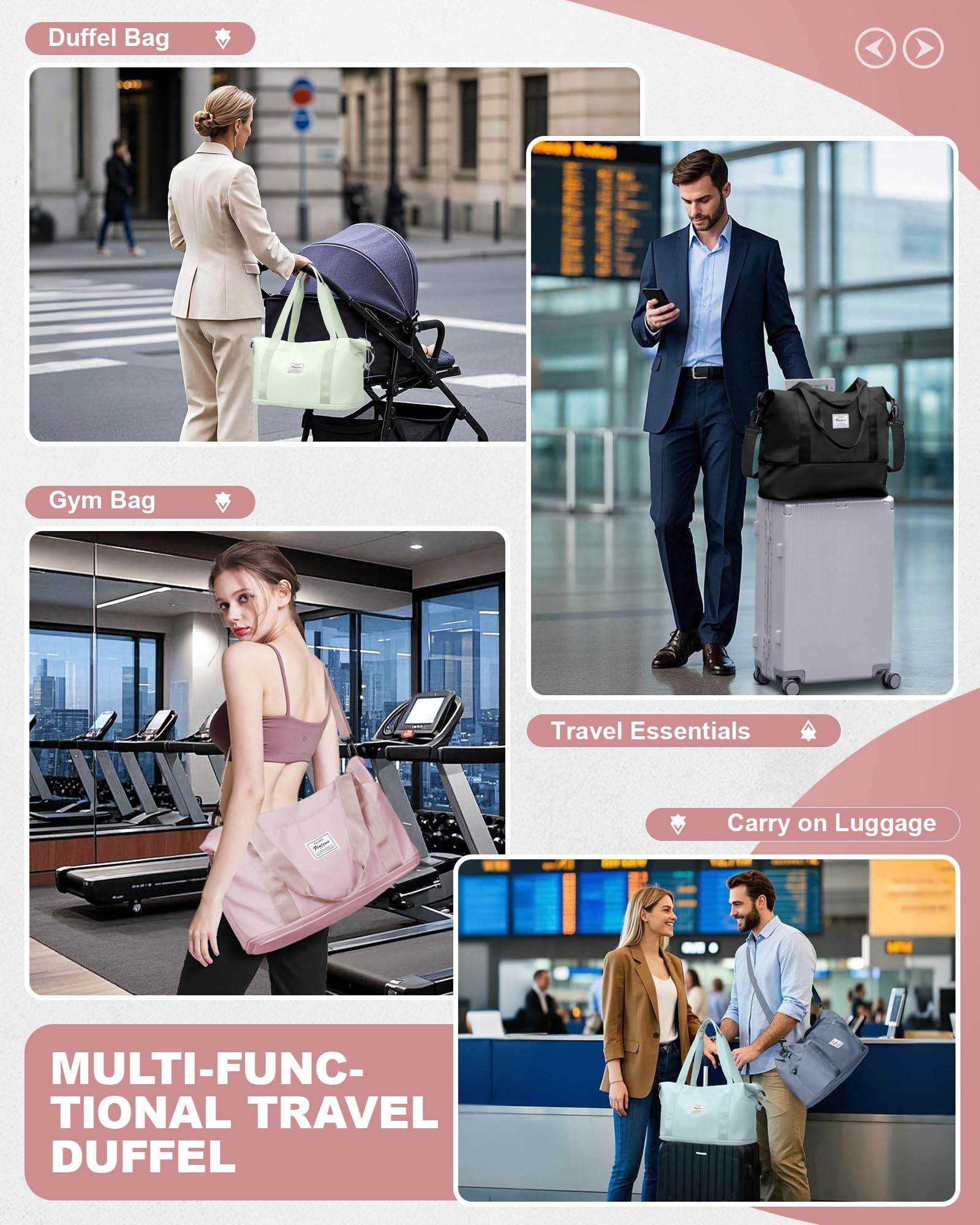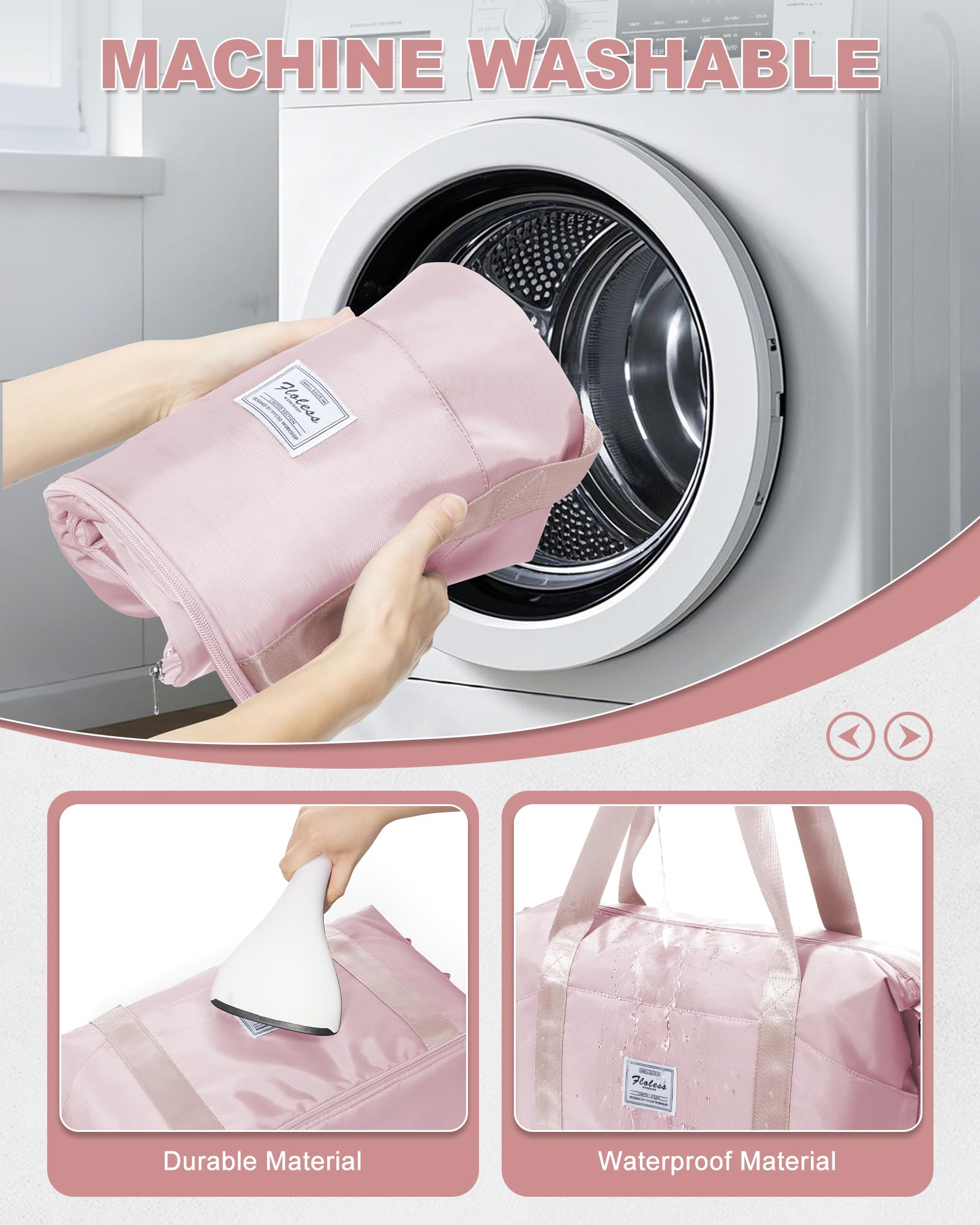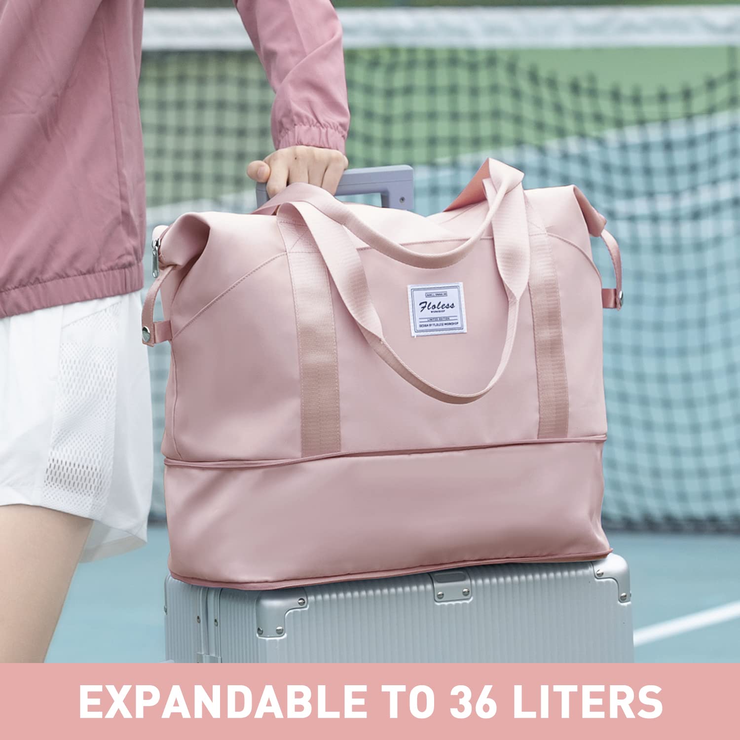 Foldie Large Travel Tote Bag, Waterproof Expandable Personal Item Duffel Gym Bag,Weekender Carry On Overnight Bags for Women Airplanes with Trolley Sleeve Wet Pocket,travel duffel bags,Pink