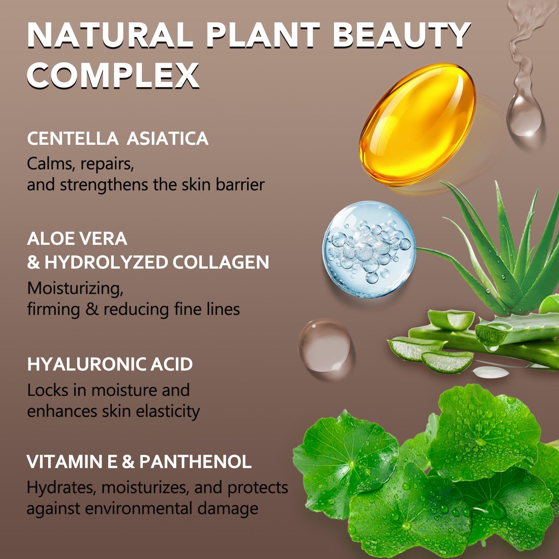 - [Gentle Herbal Formula] Enriched with Centella Asiatica,Aloe, Vitamin E,and other plant extracts,it deeply hydrates,soothes, and repairs the skin.Mild and non-irritating,suitable even for sensitive skin