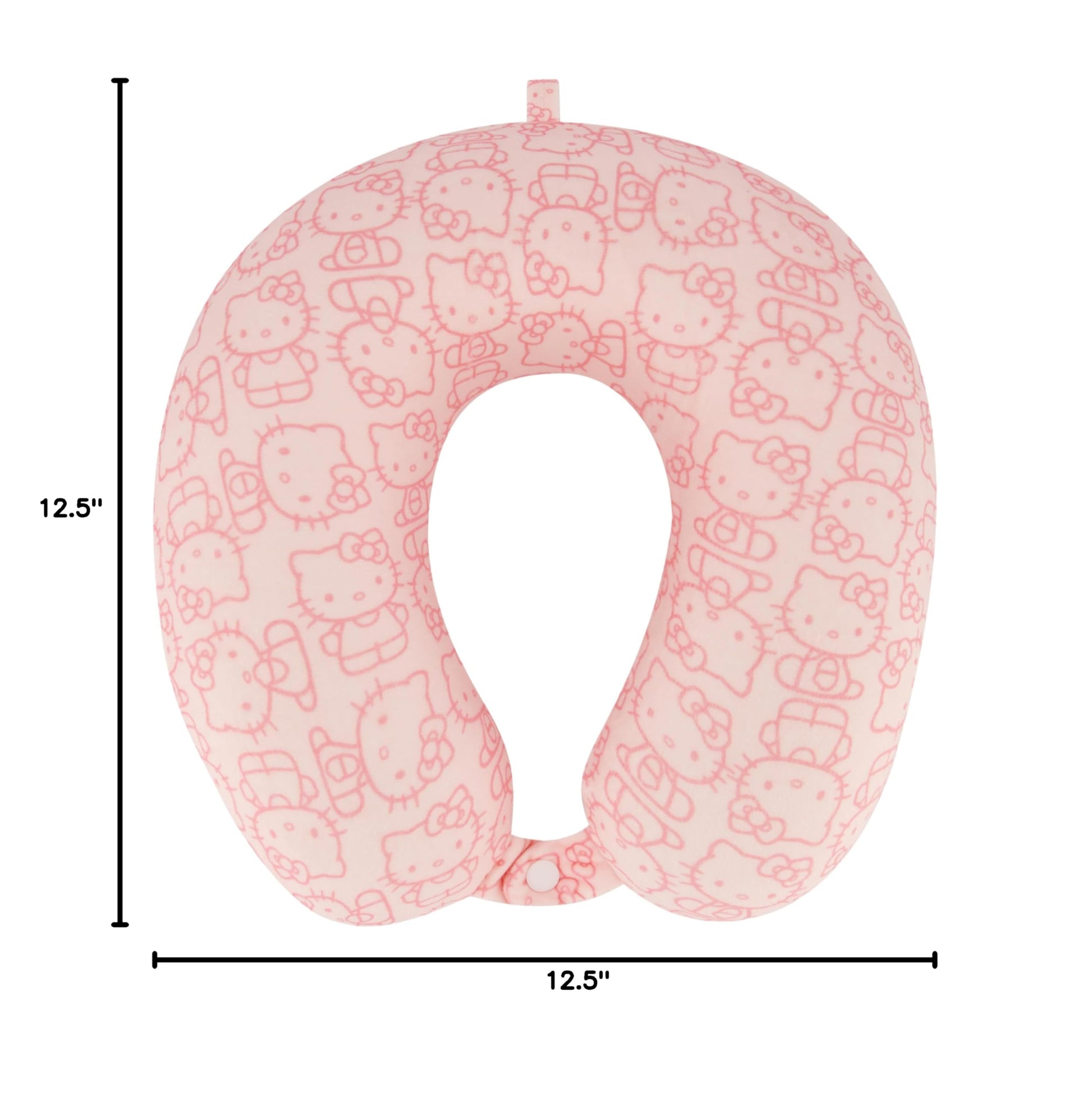 - DIMENSIONS: Hello Kitty travel neck pillows measure 12.5 W x 12.5 D x 4 H in inches, and weigh 1 lb