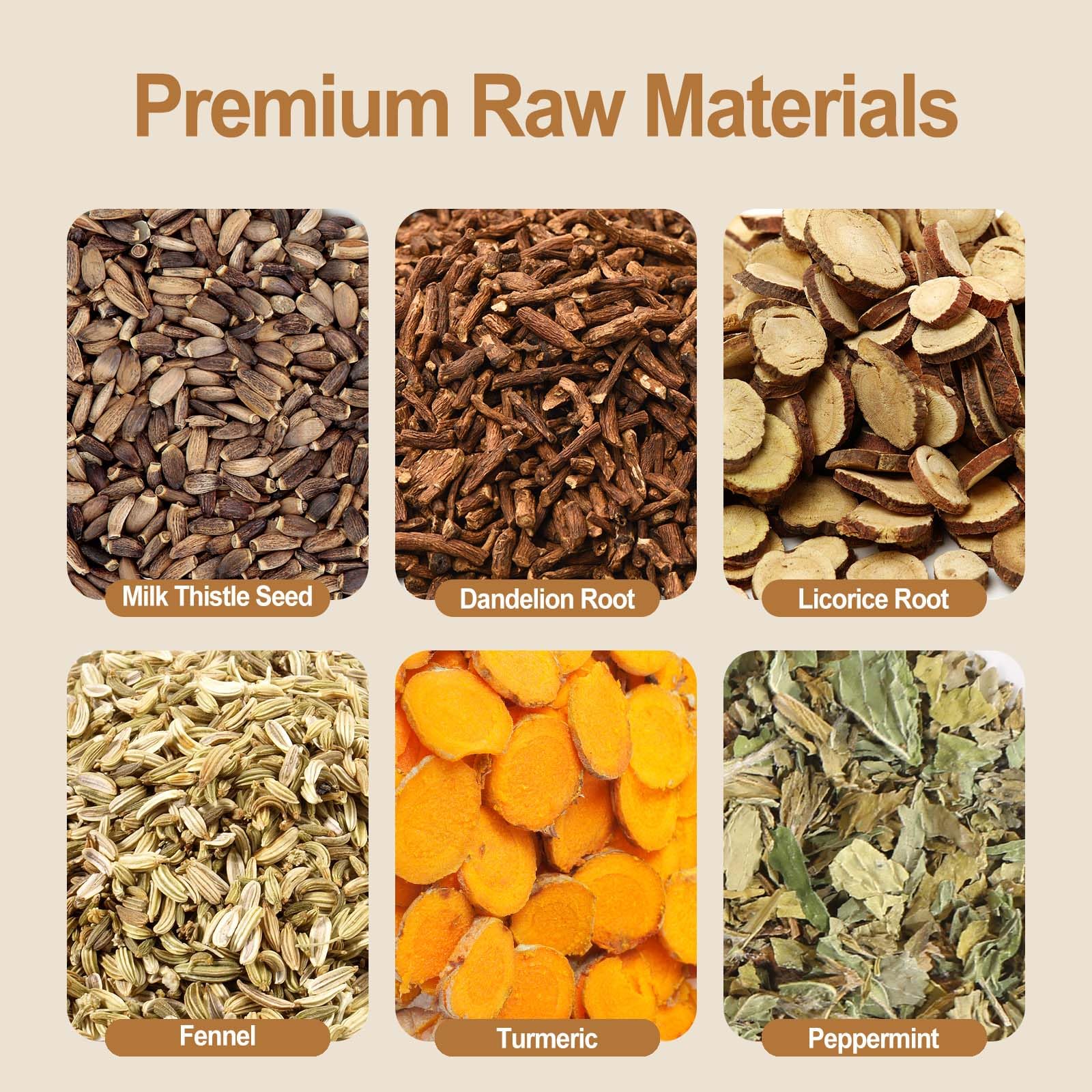 - ·Straight from Nature: Our detox tea is crafted from premium milk thistle seed, dandelion root, licorice root, fennel, turmeric, and peppermint, ensuring the freshest and most flavorful brew