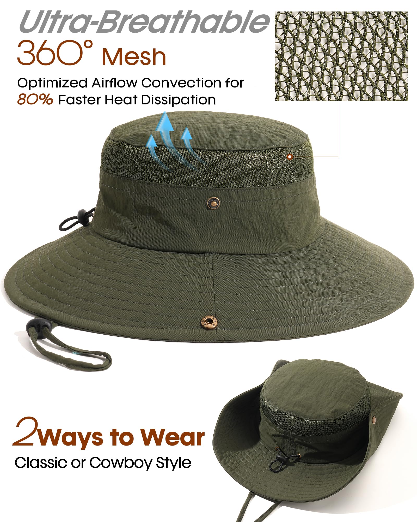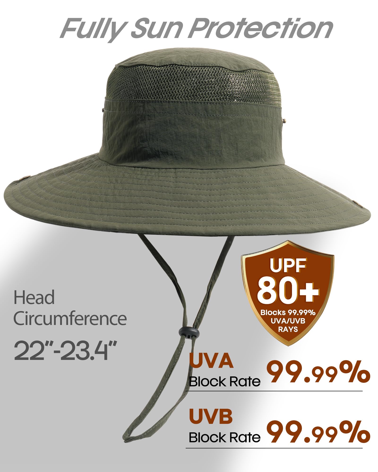 FURTALK Sun Hats for Men Women Fishing Hat UPF 80+ Breathable Wide Brim Hiking Summer UV Protection Bucket Hats Green