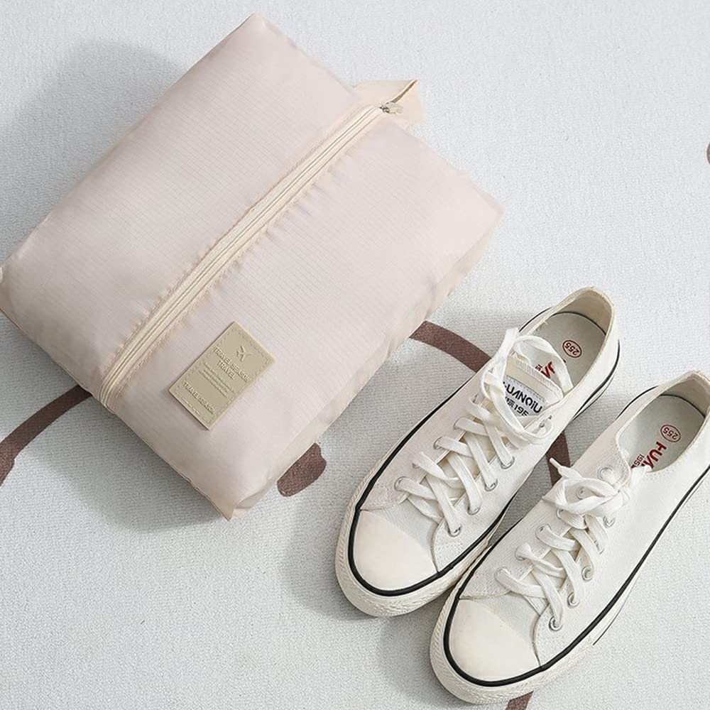 Fxkoolr 7 Set Packing Cubes, Packing Organizers Travel Foldable Luggage Organizers Storage Bag Accessories for Suitcase with Laundry Bag & Shoe Bag, Beige