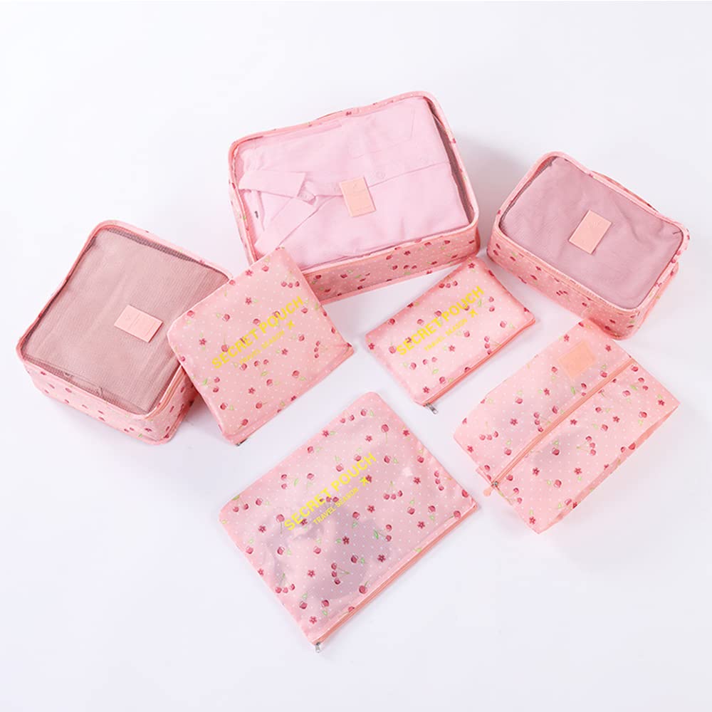 Fxkoolr Packing Cubes for Suitcases - 7 Pieces,Light Packing Cubes for Travel, Suitcase Organizer Bags Set, Luggage Organizers for Suitcase, Water-Resistant Travel Essentials, Pink Cherry