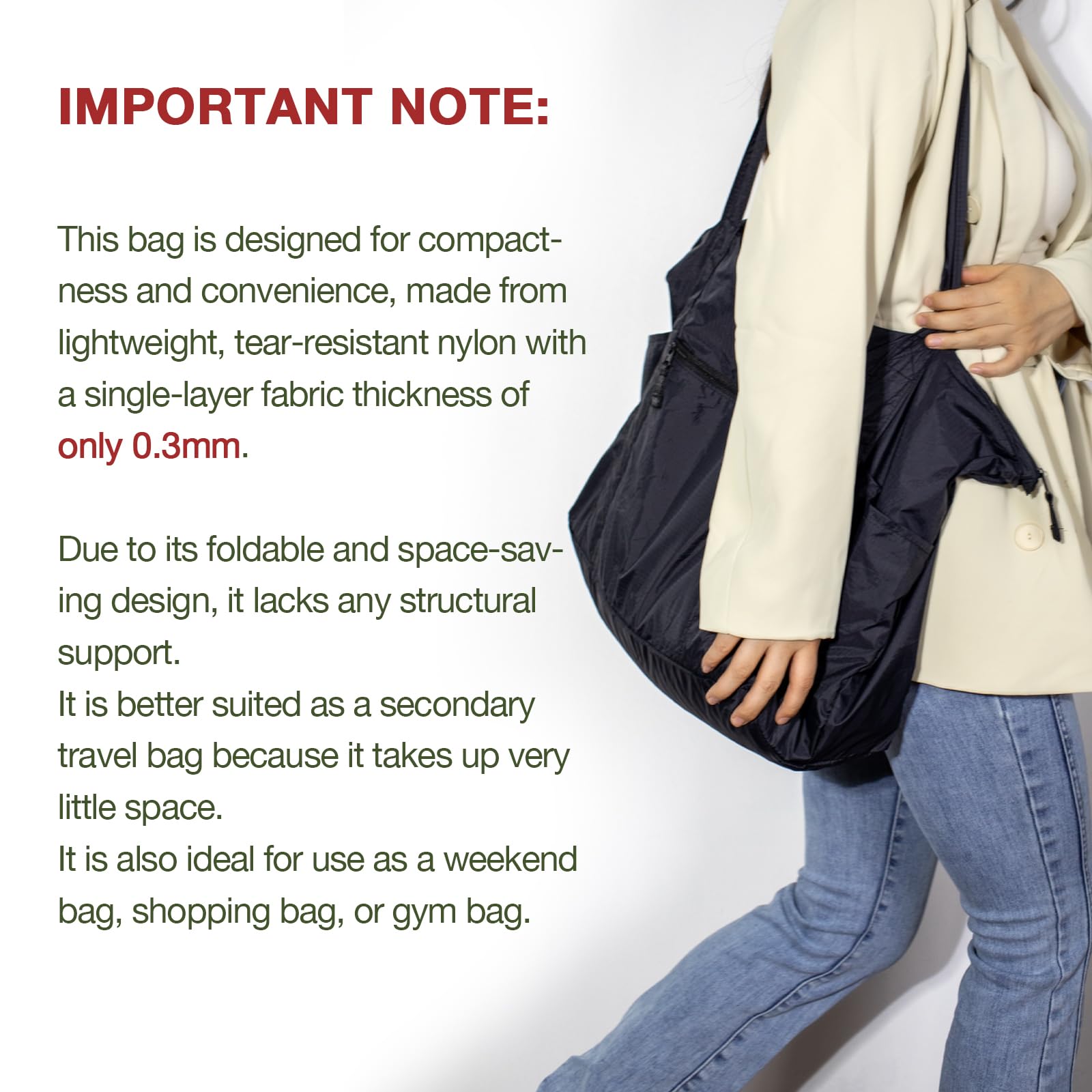 - Durable Materials: 0.03mm ultra-thin Though lightweight, the bag is made with high-strength anti-tear nylon, ensuring durability and longevity even with heavy use.