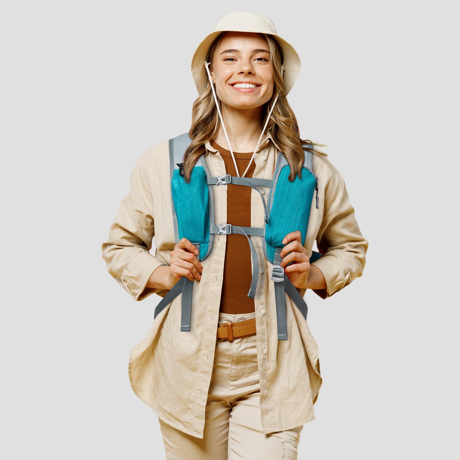 - Strap Pouches:The small backpack has two easy access pockets on shoulder straps, which can be used to store phone, sunglasses, sunscreen, energy bars and other commonly small outdoor items