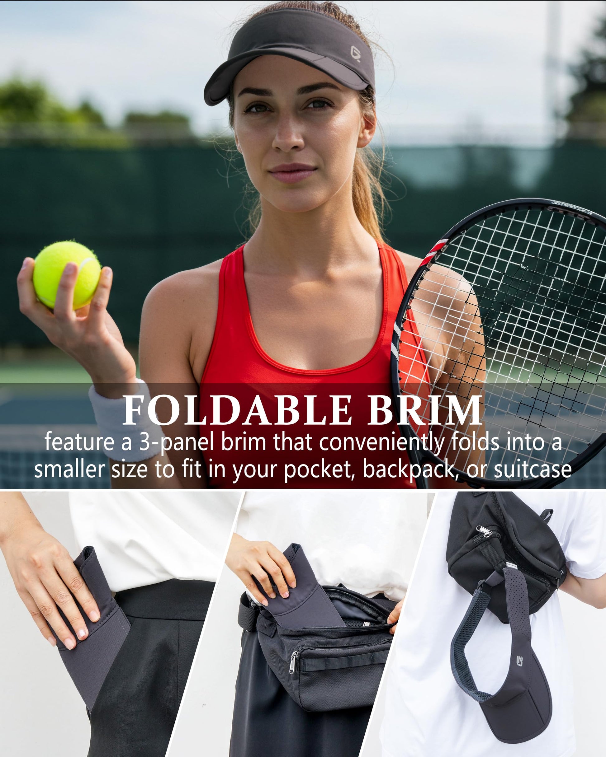 - Foldable Brim: Our visor hats feature a 3-panel brim that conveniently folds into a smaller size to fit in your pocket, backpack, or suitcase. Thanks to our patented stitching structure at the fold lines, they retain their original curve and firmness when unfolded