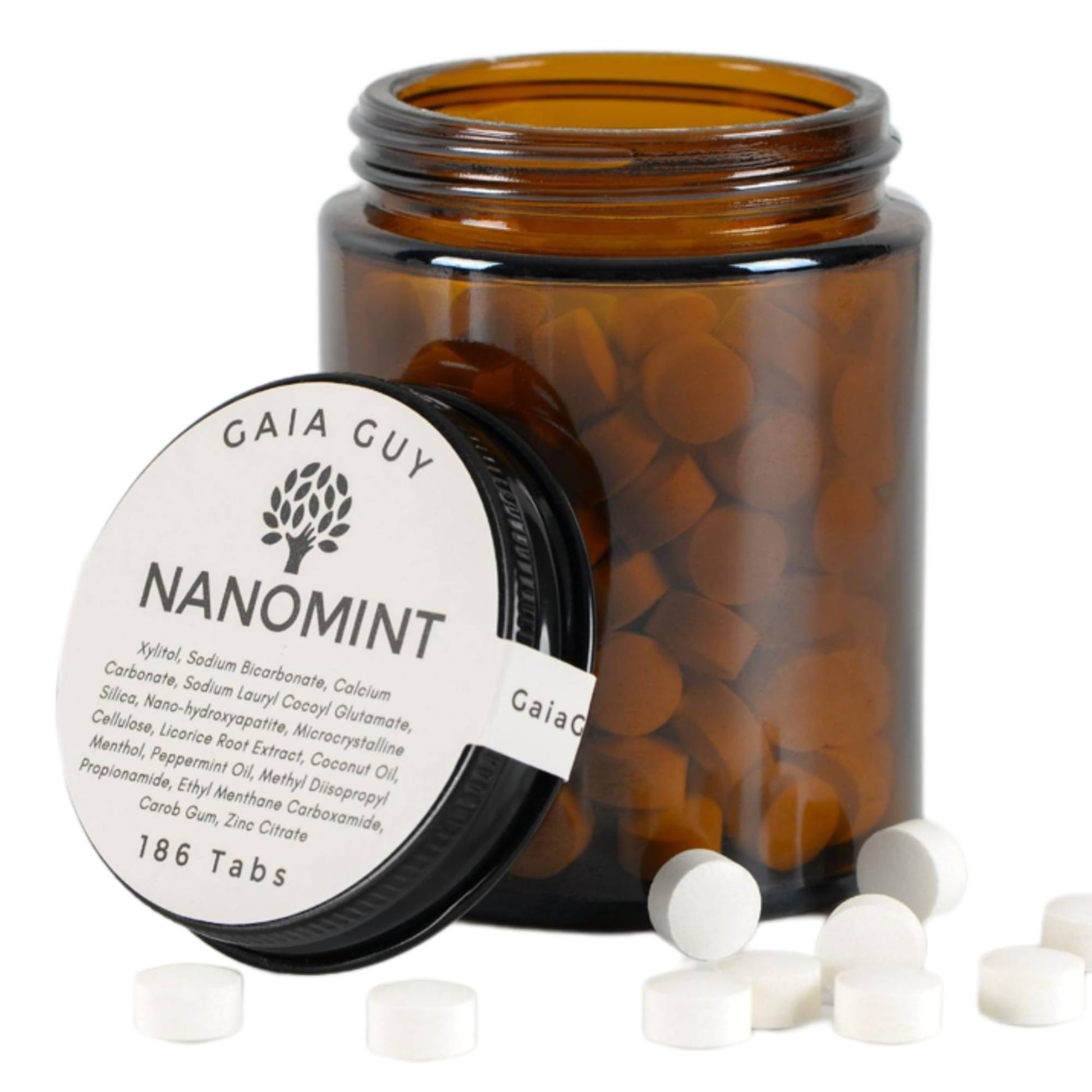 Gaia Guy | NanoMint Fluoride Free Toothpaste | Nano-Hydroxyapatite Remineralizing Toothpaste Tablets - Nano Hydroxyapatite (nHA), Plastic Free, Eco-Friendly Glass Jar | 186 Tabs