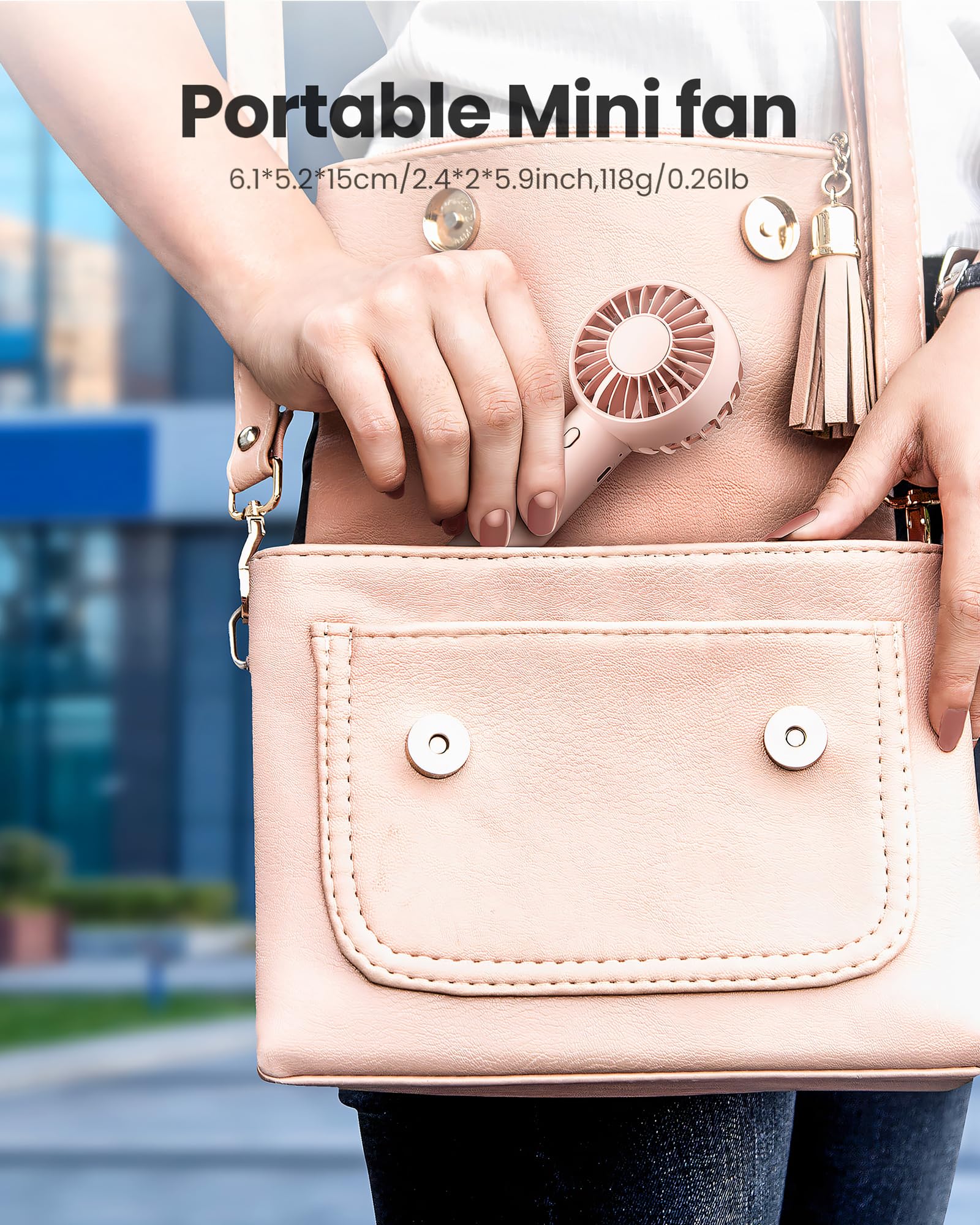 - Small size: This cute little fan is only 6.1*5.2*15 cm/2.4*2*5.9 inch, 118 g/0.26 lb, you can put it in your pocket or bag and hang it around your backpack