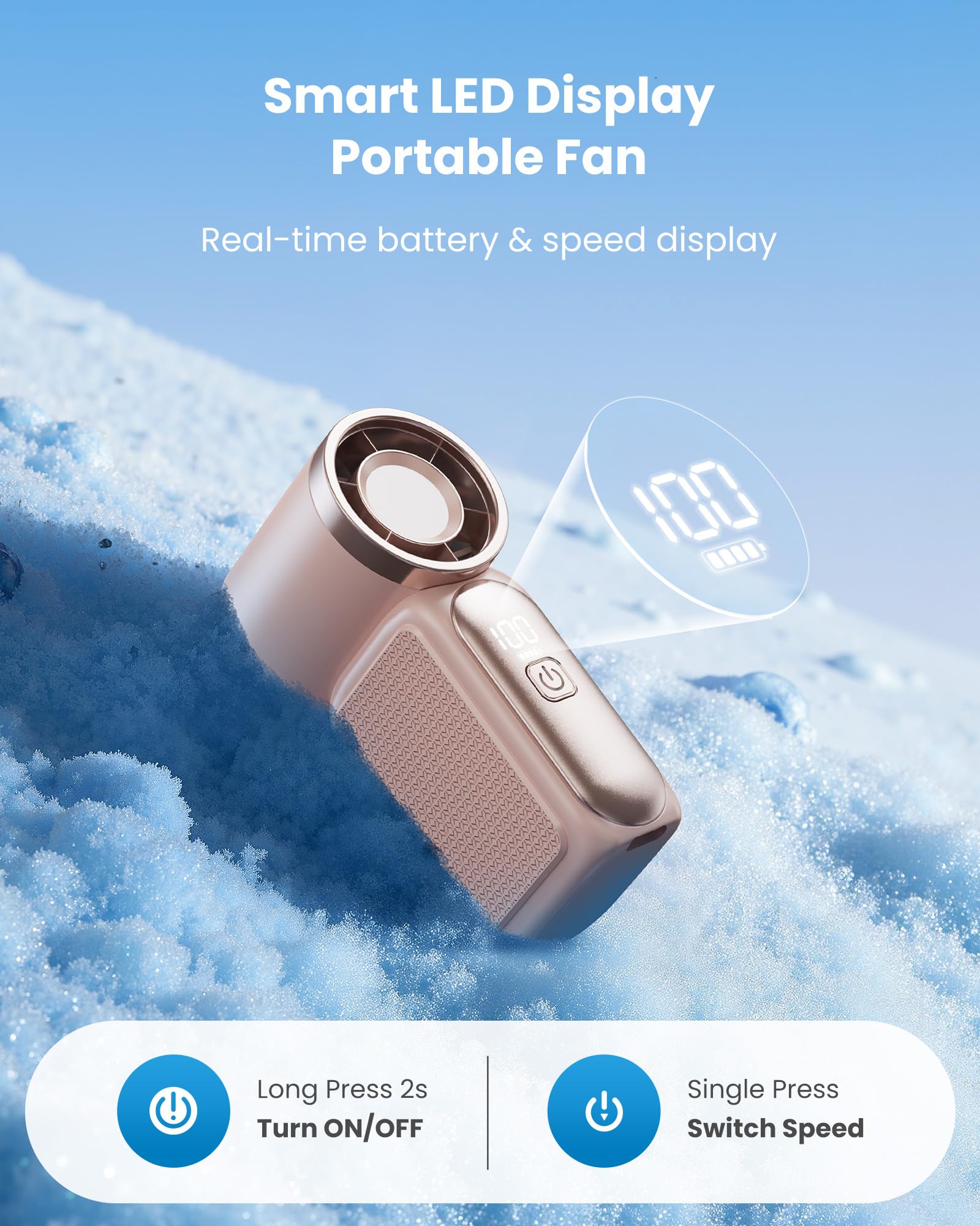- Smart LED Display & 6-Speed Handheld Fan: Stay in full control with a clear LED screen that shows real-time speed and battery level. Easily toggle between 6 wind modes—from soft breeze to turbo cooling—with one button. A user-friendly USB rechargeable fan perfect for makeup, office, or gym use
