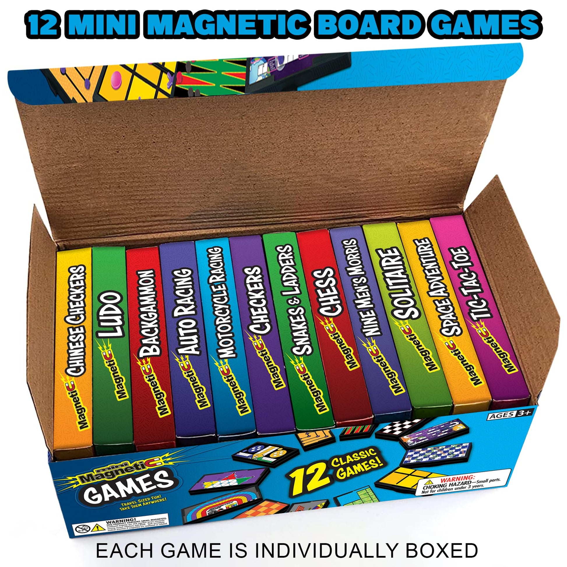 Gamie Magnetic Board Travel Games for Kids, Set Includes 12 Retro Fun Games - 5" Compact Design - Individually Boxed - Teaches Strategy & Focus, Great for Road Trip/Travel/Camping, Gift for Ages 6+