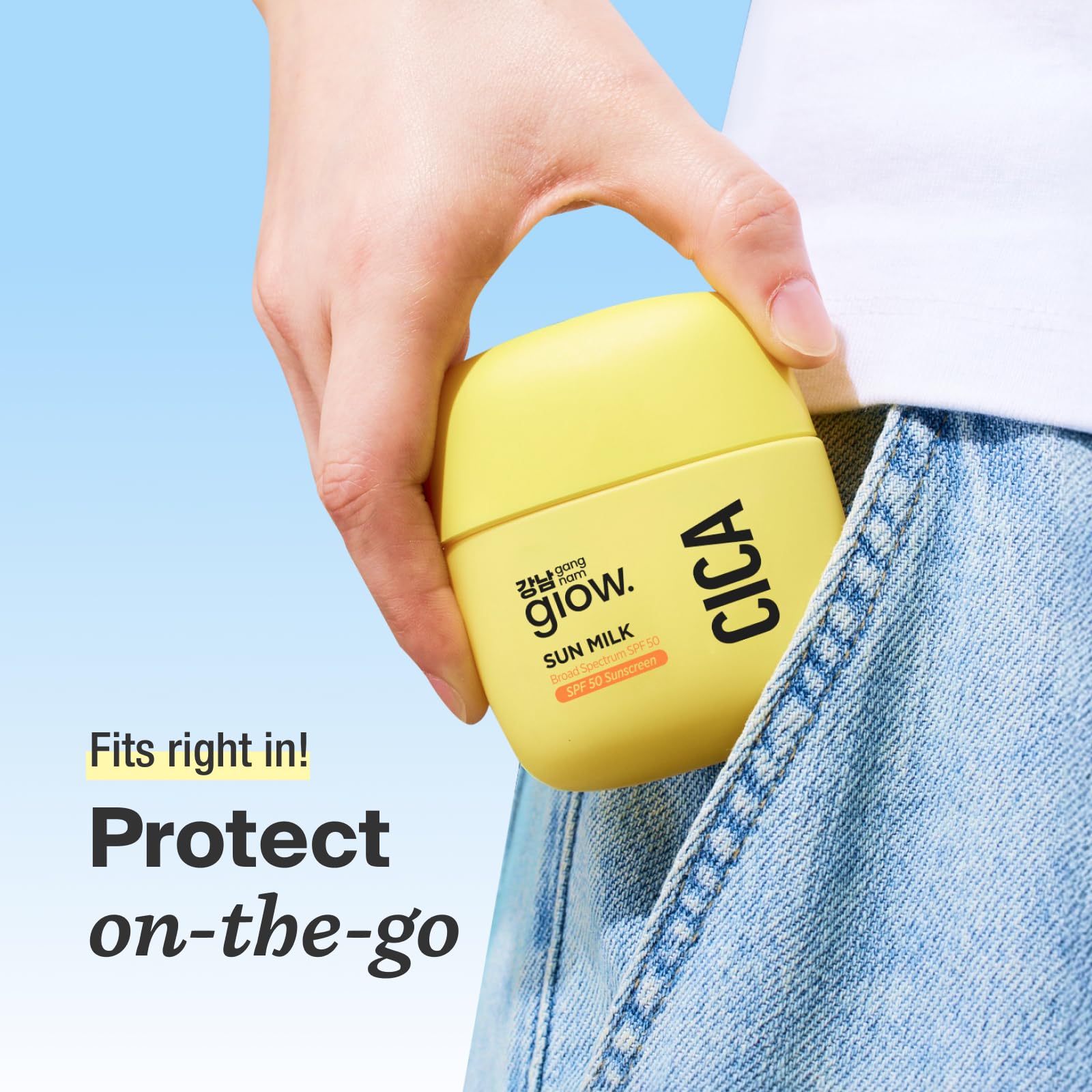 - [GENTLE FORMULATION FOR SENSITIVE SKIN] Specially formulated with skin-friendly ingredients, GANGNAM glow CICA SUN MILK is free from fragrances that can trigger irritation and won't sting eyes. Perfect for daily use.